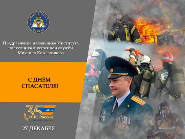 Поздравление начальника Института полковника внутренней службы Михаила Кожевникова c Днем спасателя и 35-летием со дня основания МЧС России!