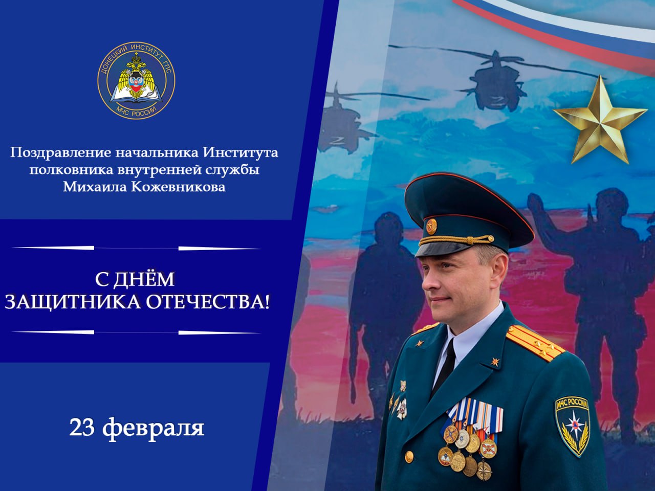 Поздравление начальника Донецкого института ГПС МЧС России полковника внутренней службы Михаила Кожевникова с Днём защитника Отечества