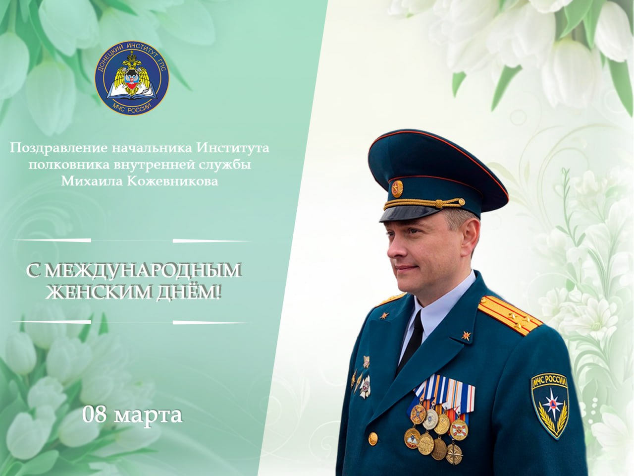 Поздравление начальника Донецкого института ГПС МЧС России полковника внутренней службы Михаила Кожевникова с Международным женским днём!