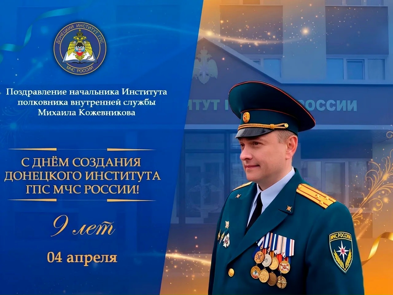 Поздравление начальника Донецкого института ГПС МЧС России полковника внутренней службы Кожевникова М. Л. с Днём создания Института