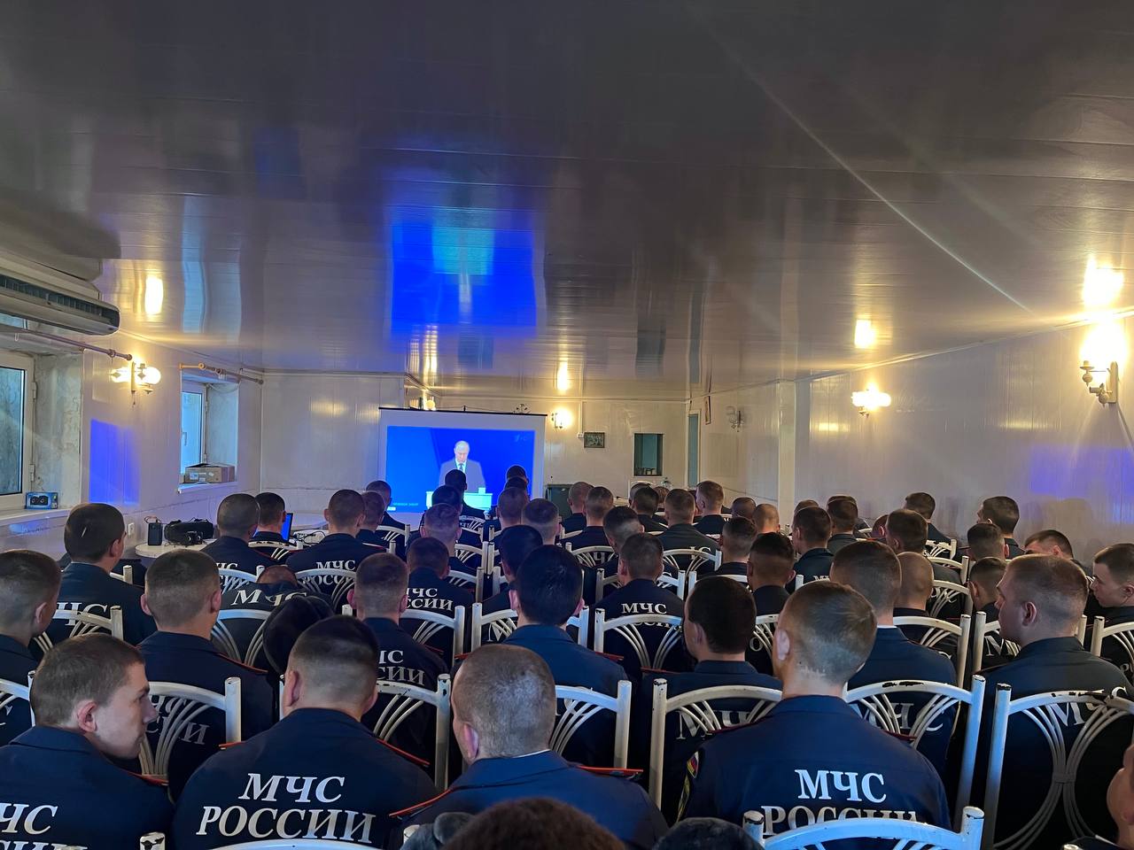 Личный состав Донецкого института ГПС МЧС России присоединился к просмотру прямой трансляции послания Президента РФ Владимира Путина.