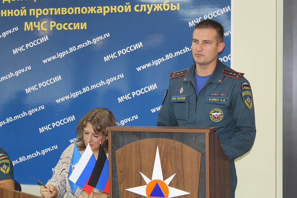 Начальник учебно-методического отдела капитан внутренней службы Бойко Николай Иванович представил презентацию: «Итоги приёмной кампании 2023-2024 учебного года в ФГКОУ ВО «Донецкий институт ГПС МЧС России».