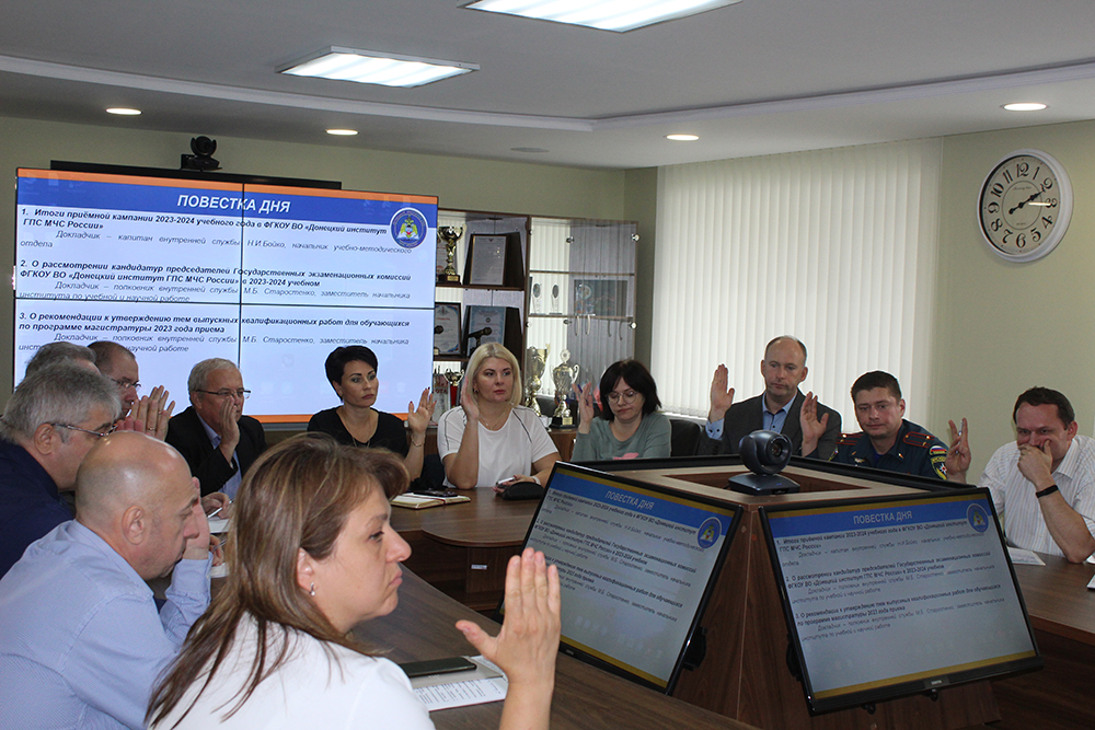 Также выступил с докладом заместитель начальника института по учебной и научной работе полковник внутренней службы Старостенко Михаил Борисович по следующим вопросам: «О рассмотрении кандидатур председателей Государственных экзаменационных комиссий в 2023-2024 учебном году»; «О рекомендации к утверждению тем выпускных квалификационных работ для обучающихся в 2023-2024 учебном году (программа магистратуры 2023 года приема)».