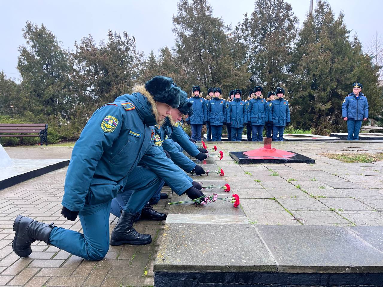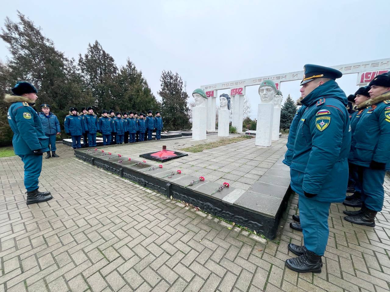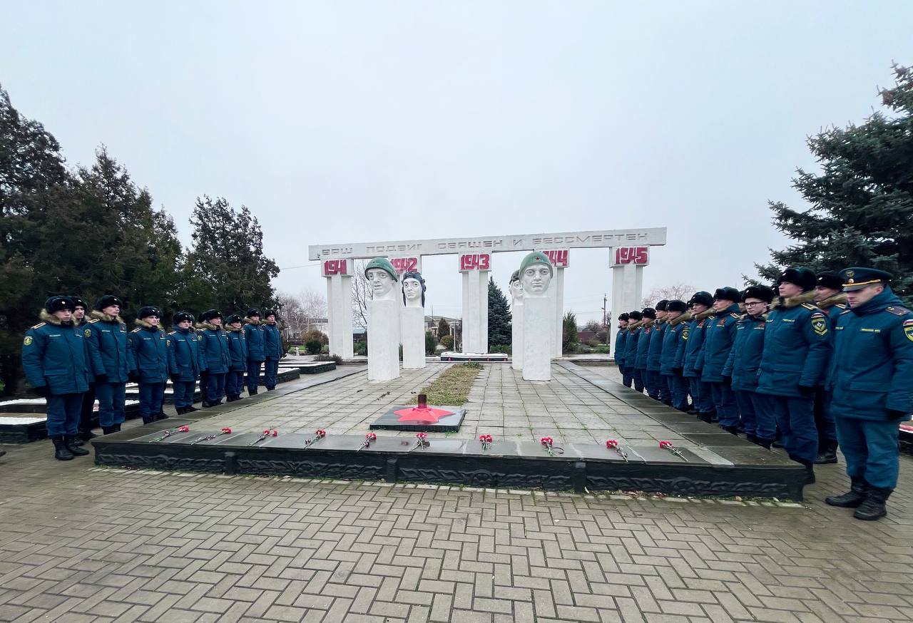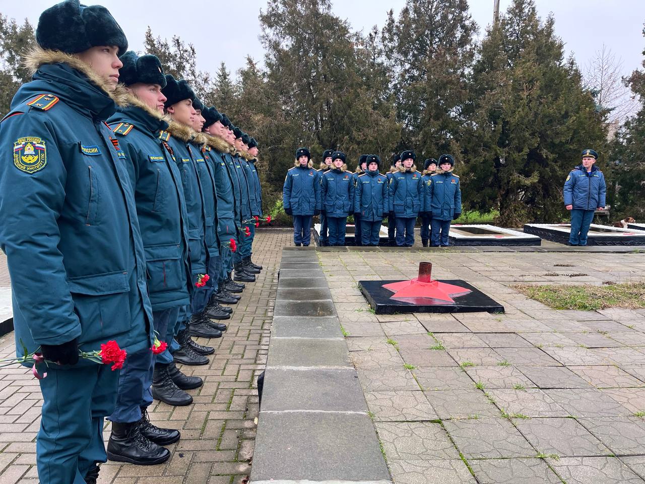 После чего курсанты отправились в центр села Урзуф к мемориальному комплексу, где командир взвода пожарной и техносферной безопасности лейтенант внутренней службы Макаров Максим Юрьевич объяснил курсантам, что значит быть героем: «Товарищи курсанты, мы должны помнить, что каждый из нас может быть героем. Достаточно всего лишь протянуть руку помощи тому, кто в ней нуждается, отстоять свои убеждения, защитить кого-то от насилия или дать второй шанс тому, кто его заслуживает. Герои — это не только военные, это и медики, и учителя, и врачи, и множество других обычных людей, которые каждый день делают что-то доброе и важное для себя, своих близких и для нашей страны».