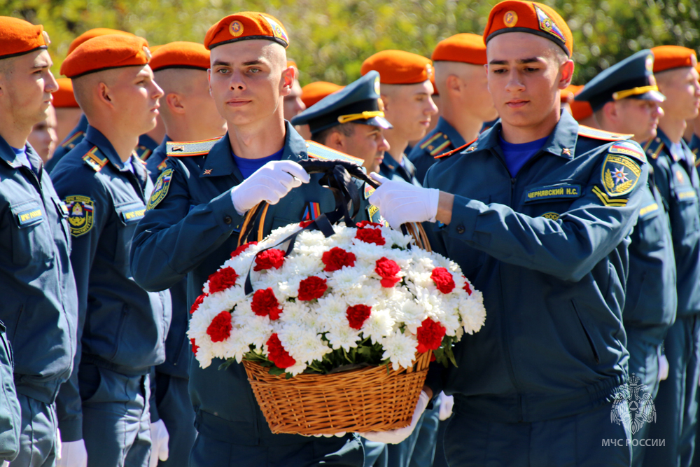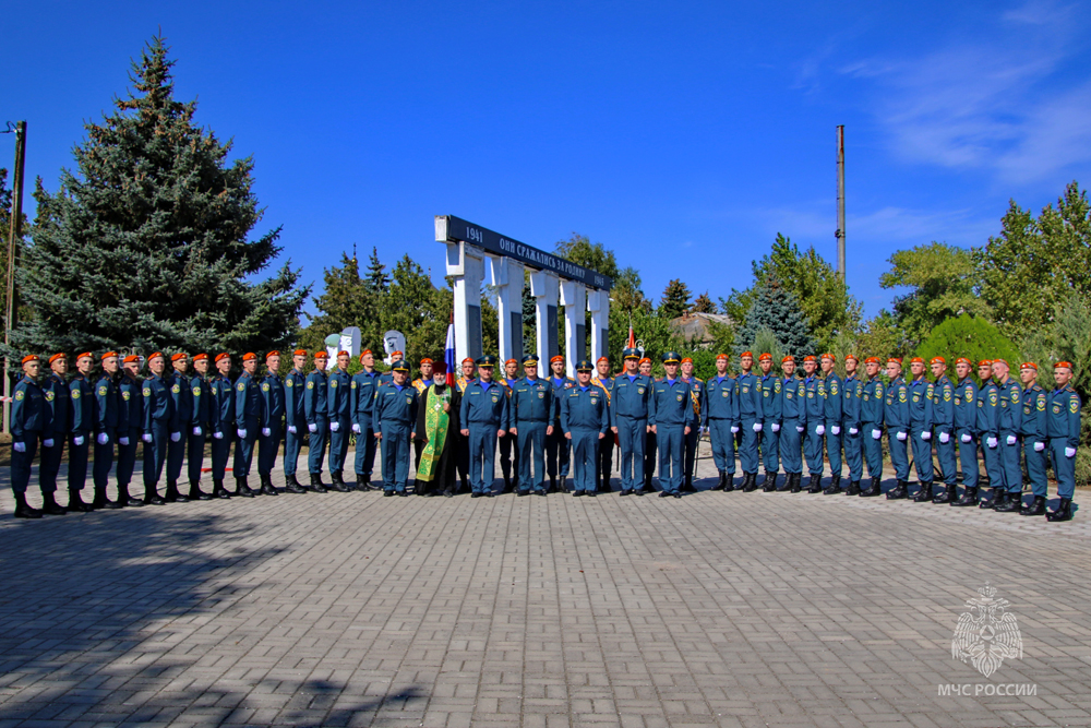 Продолжением мероприятия стало проведение церемонии освящения курсантов института, после чего они возложили цветы к монументу мемориального комплекса и почтили минутой молчания память героев, отдавших свою жизнь ради спасения родного края.