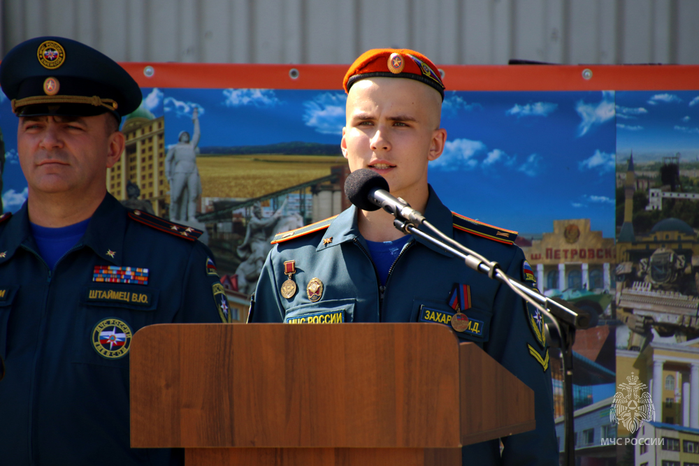 В торжественном мероприятии принял участие начальник Главного управления МЧС России по Донецкой Народной Республике. Обращаясь к курсантам, Алексей Кострубицкий отметил важность сегодняшнего события: «Вы дали клятву верно и добросовестно служить Великой России и выполнять задачи, которые решает наше героическое Министерство. «Служу России, служу народу!» – я хочу, чтобы эти слова вы поняли сердцем и соблюдали с честью!».