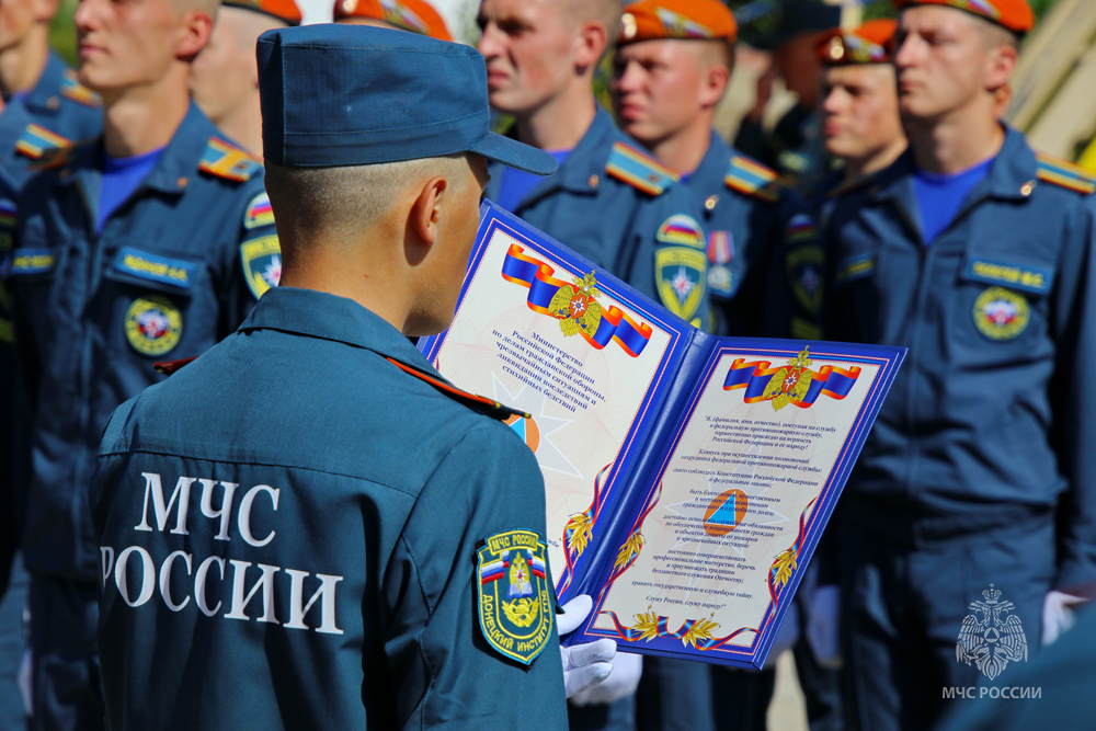 От имени главы МЧС России Александра Куренкова поздравить будущих спасателей приехал заместитель директора Департамента образовательной и научно-технической деятельности МЧС России Виталий Штаймец. Он сказал о персональной ответственности, которая теперь возложена на будущих офицеров: «Приняв Присягу, вы приняли на себя высокое обязательство, и теперь учеба в институте для вас не просто получение диплома об образовании. Это высокая ответственность за приобретение глубоких знаний, отработку практических навыков. В любую секунду вы должны быть готовы прийти на помощь всем нуждающимся. Учитесь и служите достойно».