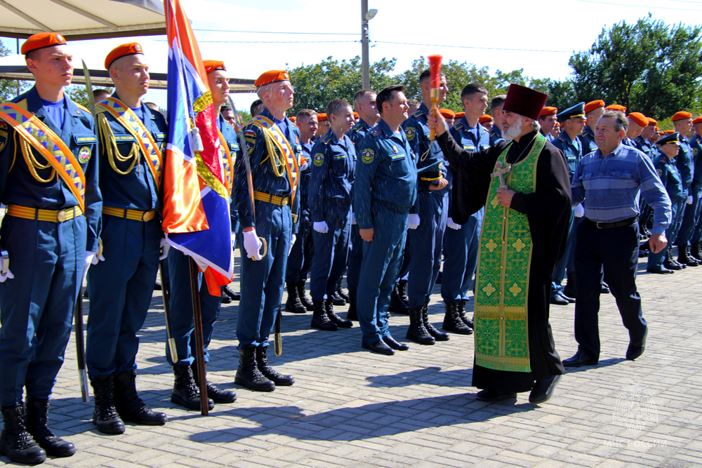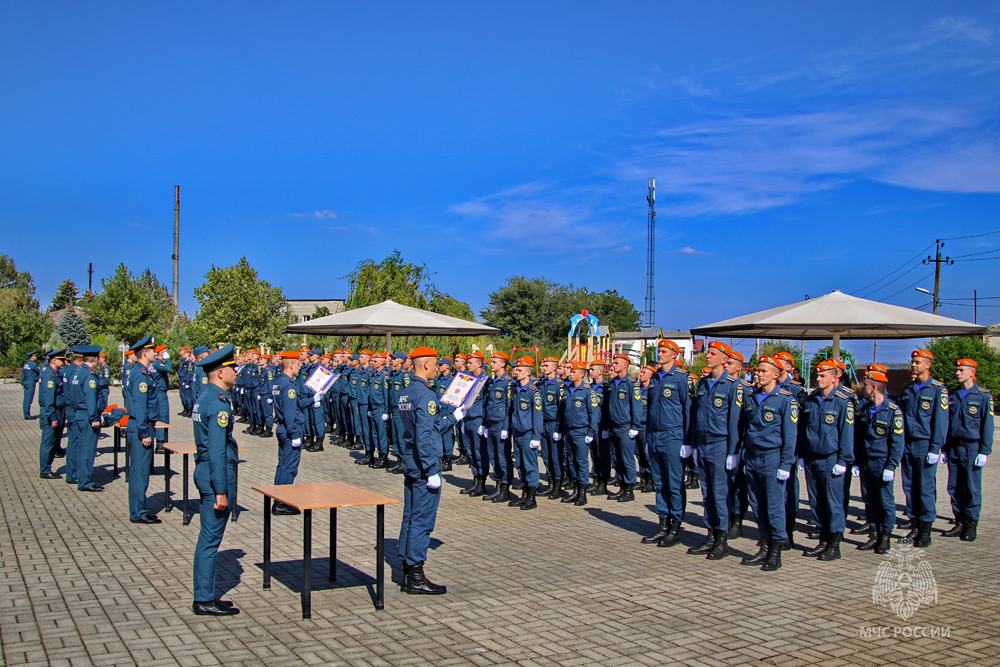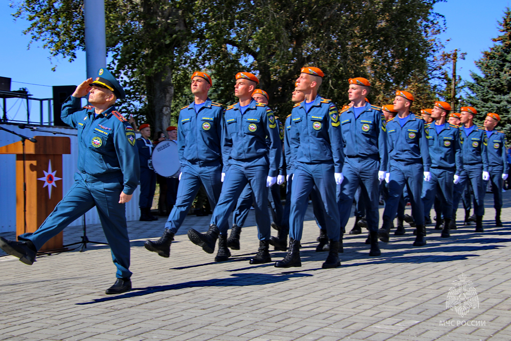 В девятую годовщину создания МЧС ДНР состоялась торжественная церемония принятия Присяги курсантами Донецкого института противопожарной службы МЧС России. 129 будущих офицеров поклялись быть верными своей стране и защищать ее народ. В этот день впервые надели оранжевые береты 32 курсанта как символ причастности к братству спасателей.
