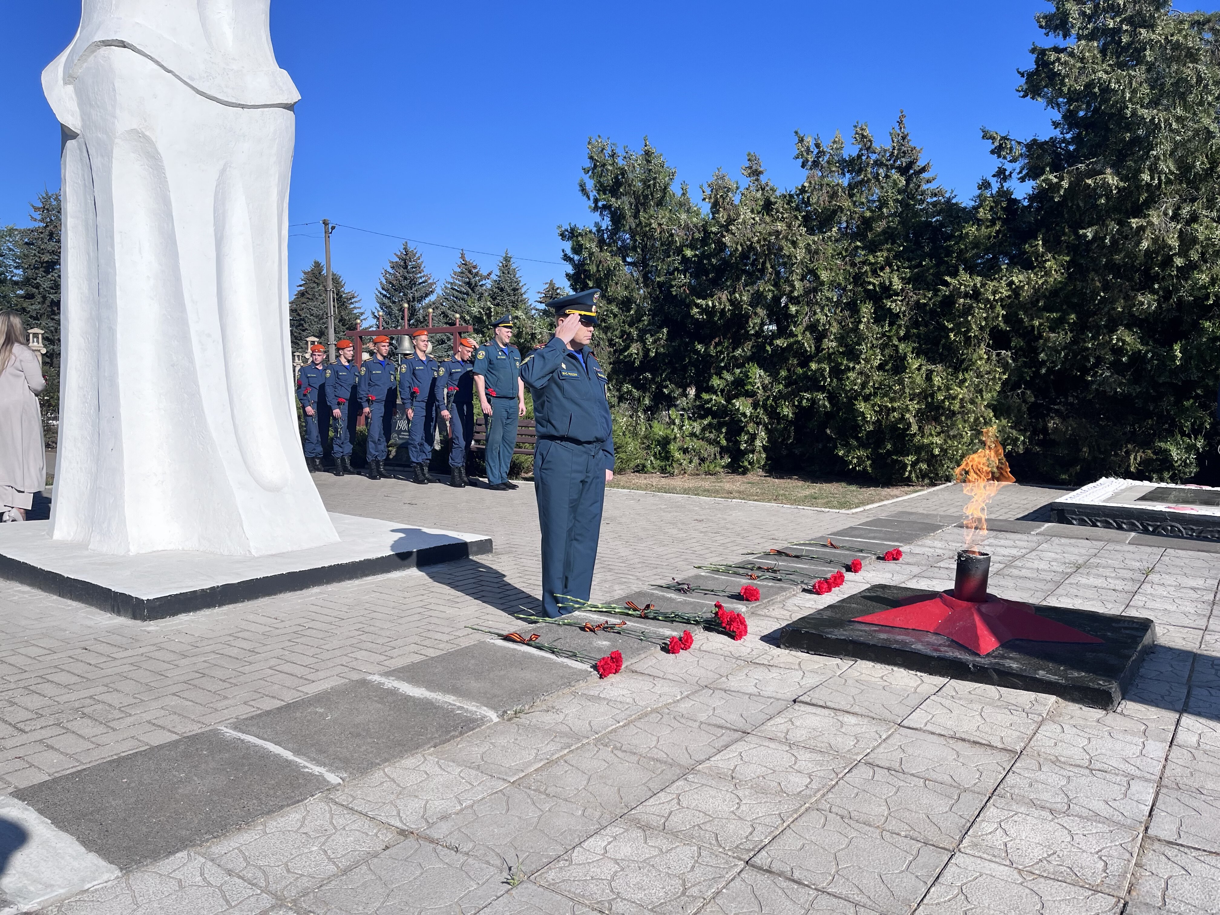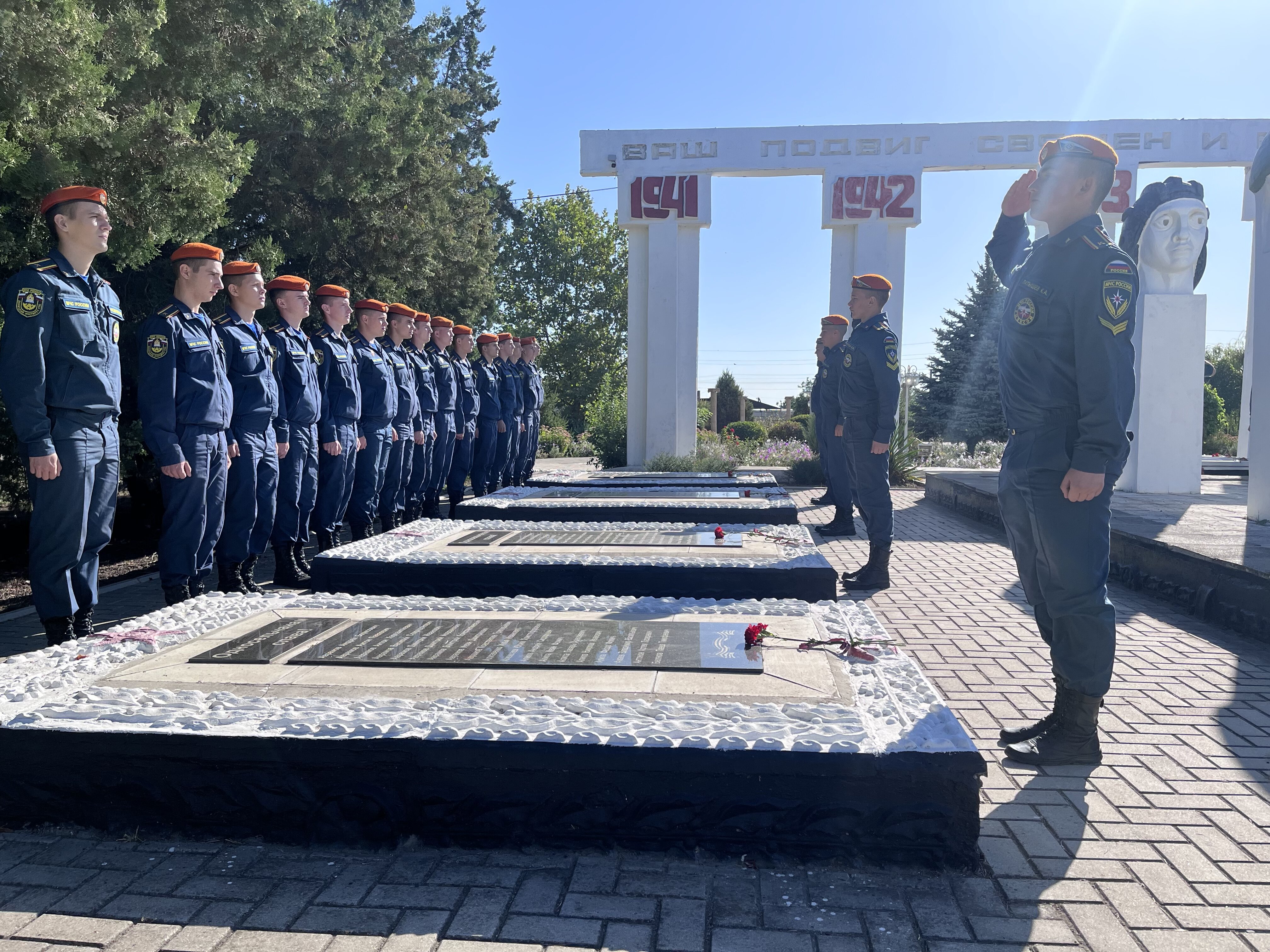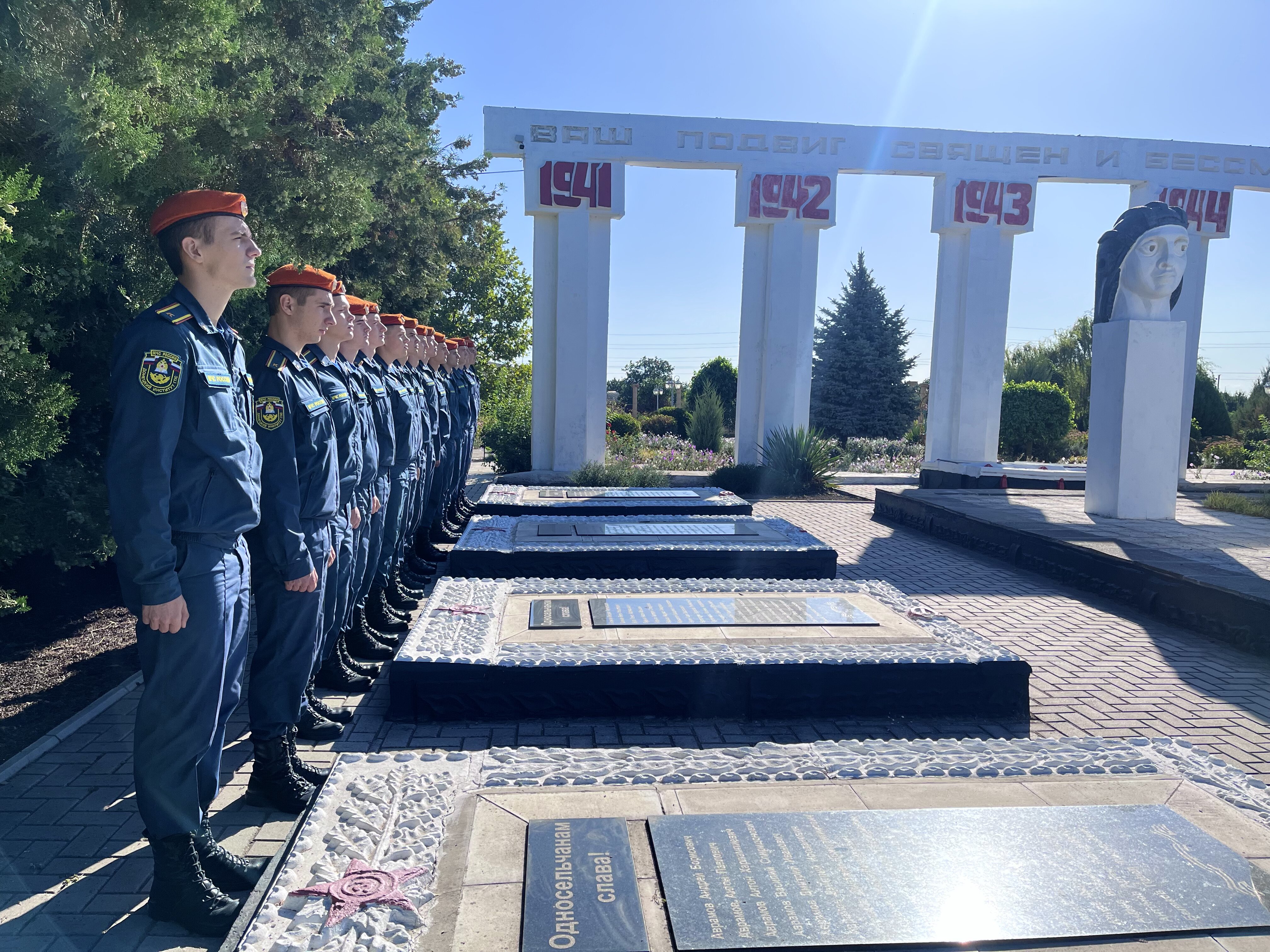 С напутственным словом к курсантам обратился заместитель начальника факультета пожарной и техносферной безопасности Донецкого института ГПС МЧС России полковник внутренней службы Сериков Александр Владимирович: «Вся Россия чтит память о героях тех времен, преклоняют головы перед подвигом тех, кого нет среди нас, кто, защищая нашу Родину, пал смертью храбрых в смертельных боях, кто умер в госпиталях, от ран в послевоенные годы, кто преданно трудился на благо своей державы, кто мечтал видеть наш край свободным и счастливым. Мы помним солдатский и трудовой подвиг нашего народа! В условиях, когда сегодня на нашей земле идут боевые действия, события прошлых лет должны быть постоянным напоминанием о том, как хрупок мир, как важно его беречь Вам – будущим спасателям славного и непобедимого Донбасса!».