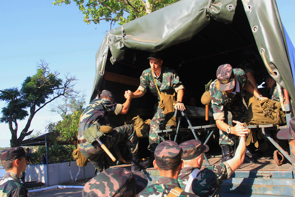 Перед началом стрельб согласно плану занятий, курсанты совершили марш-бросок, во время которого были отработаны навыки ориентирования на местности и порядок действий в случае применения противником оружия массового поражения.