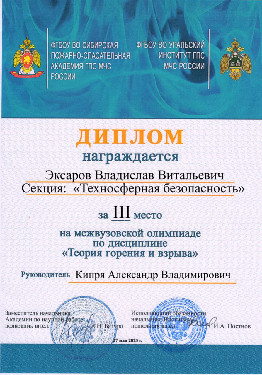 Победа обучающихся Академии в Межвузовской онлайн олимпиаде выходного дня по дисциплине «Теория горения и взрыва»