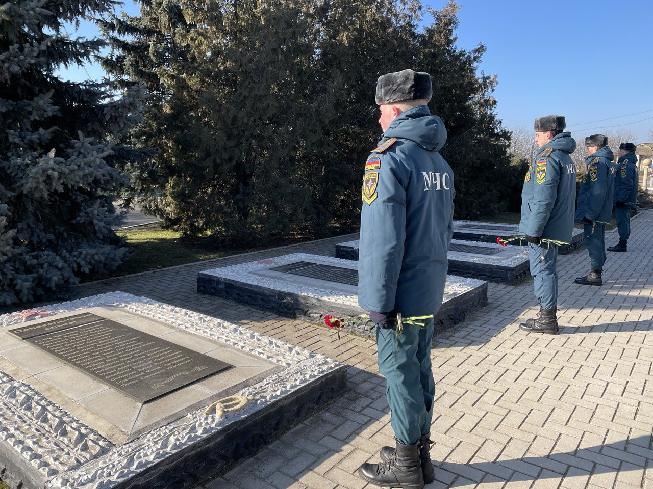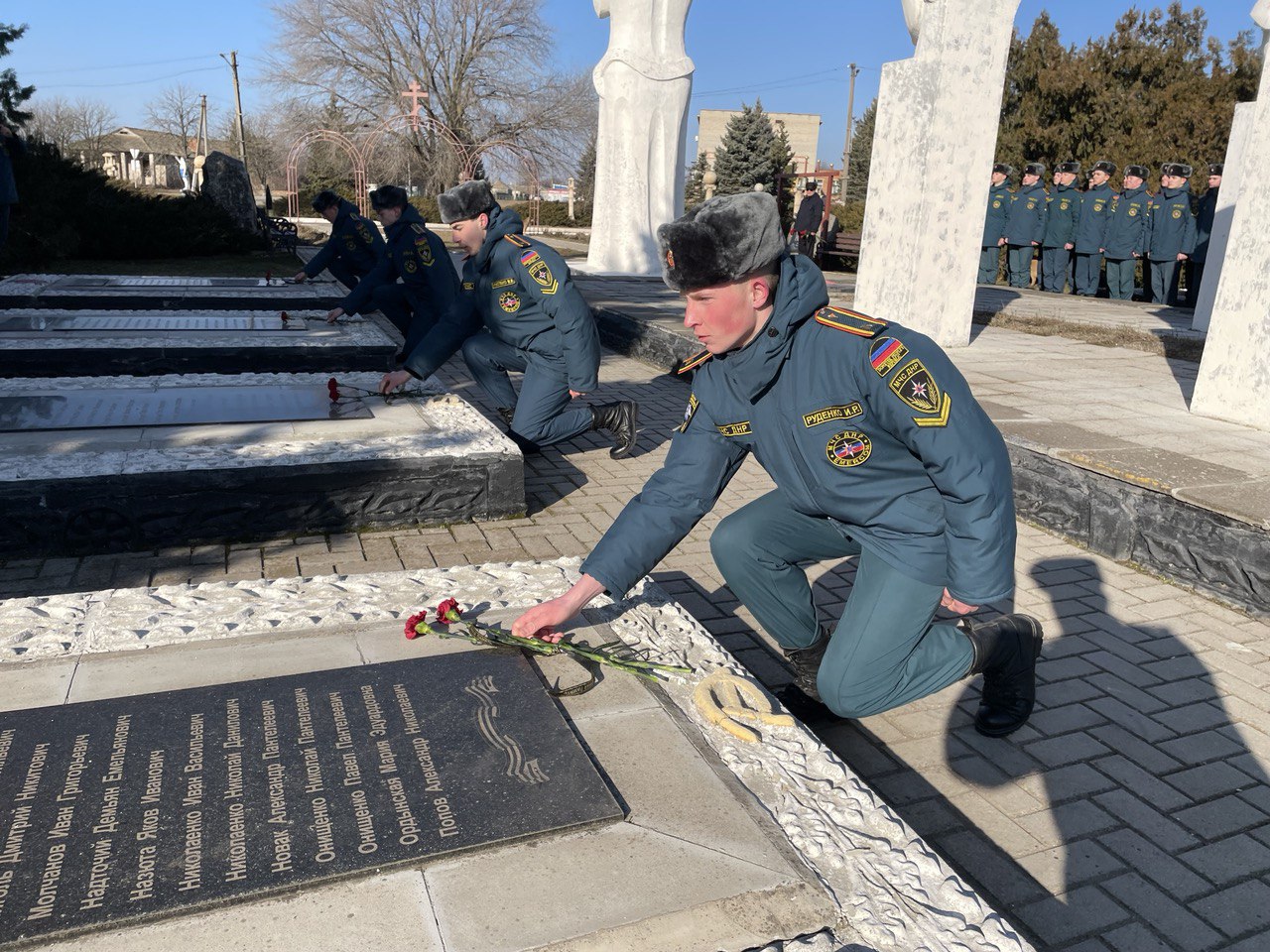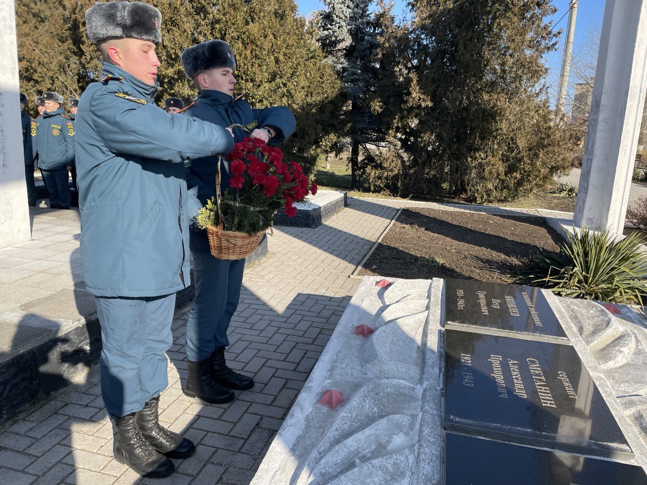 После торжественного митинга в знак уважения к бессмертным подвигам защитников Отечества курсанты Академии возложили цветы к Мемориалу погибших воинов-освободителей села Урзуф, к памятнику погибшим воинам-интернационалистам и памятнику ликвидаторам Чернобыльской катастрофы. Церемония возложения цветов завершилась минутой молчания.