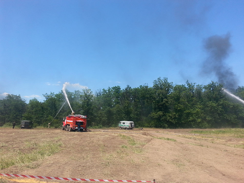 Обучающиеся Академии в сопровождении проректора (по материально-техническому обеспечению) полковника службы гражданской защиты Щербова Игоря Леонидовича и начальника факультета «Пожарной безопасности» подполковника службы гражданской защиты Колодяжного Андрея Анатольевича, наблюдали отработку взаимодействия различных служб и ведомств Республики, а также отработку практических навыков группировки сил и средств, привлекаемых для ликвидации последствий чрезвычайных ситуаций, вызванных природными пожарами.