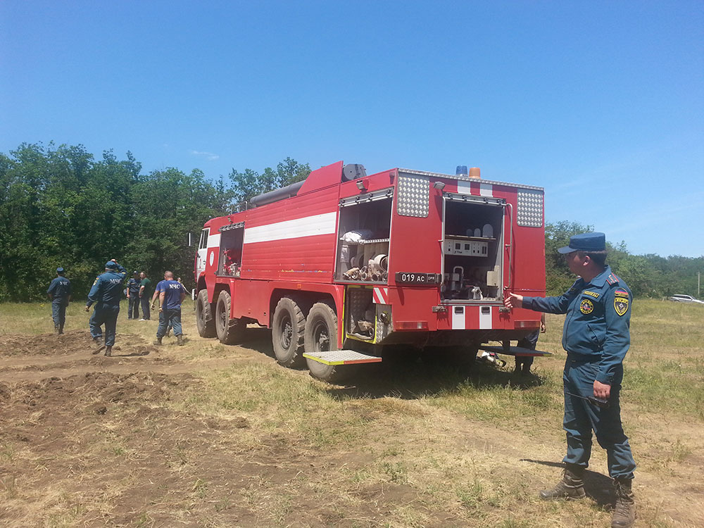 Для поисково-спасательных работ и ликвидации возгорания во время учений были привлечены: 2 специальные собаки кинологической группы Республиканского спасательного центра, пожарные автоцистерны, пожарно-насосная станция, реанимационный автомобиль, путепрокладчик БАТ-2, трактор МТЗ с дисковой бороной и пожарные модули на базе автомобиля УАЗ.