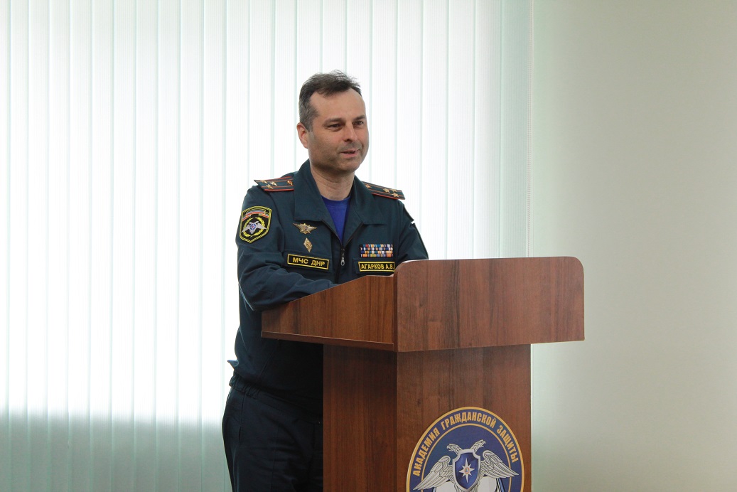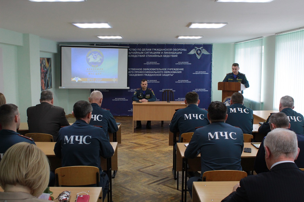 С поздравительным словом к коллективу обратился почетный начальник Академии Стефаненко Павел Викторович, который подчеркнул важность создания Академии гражданской защиты МЧС ДНР.