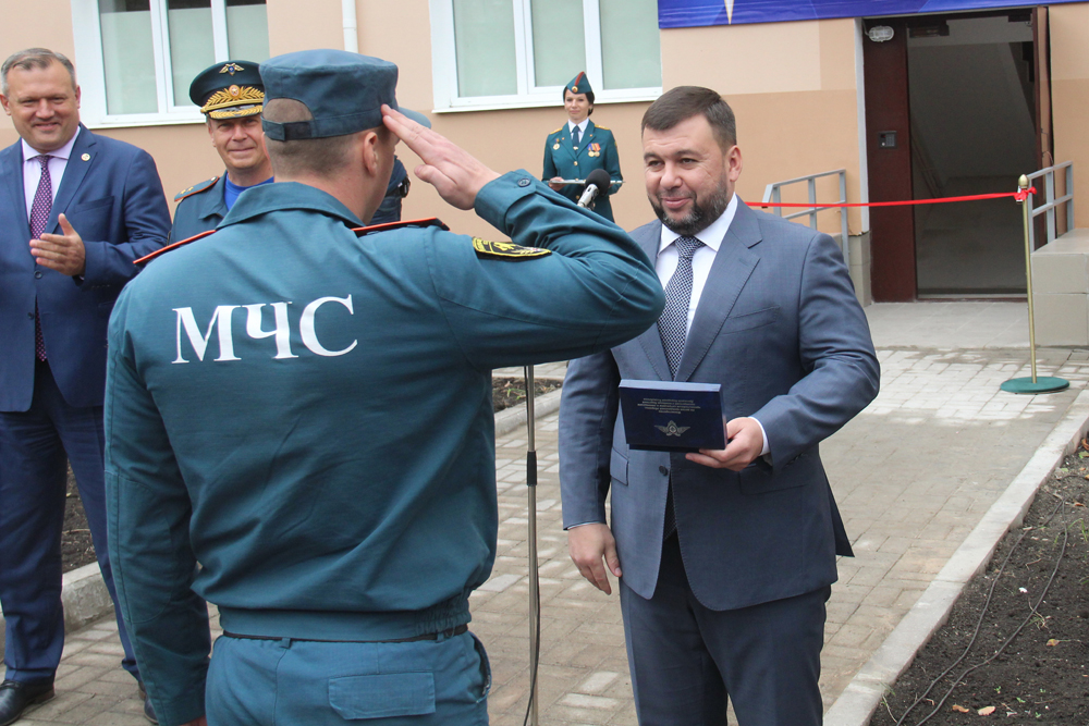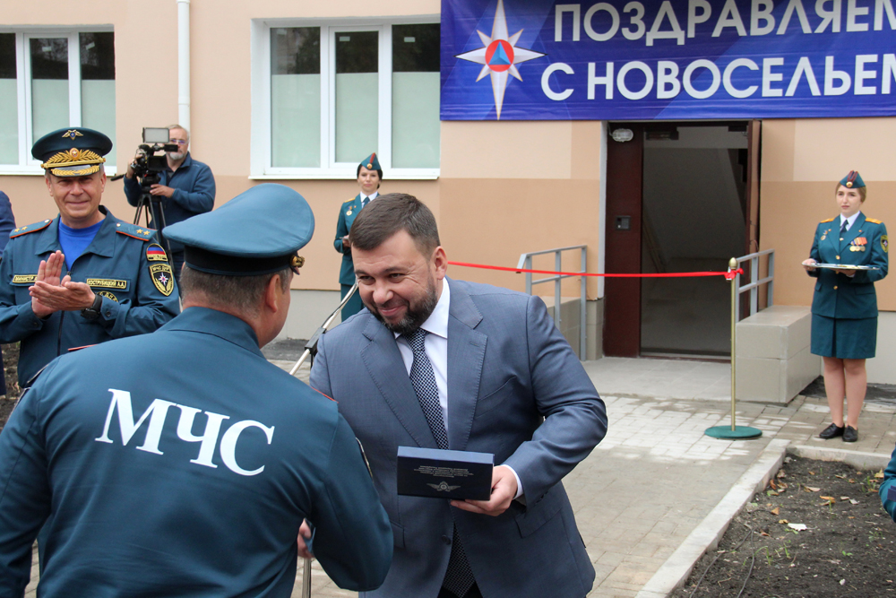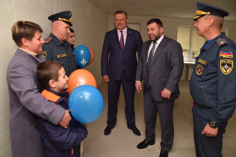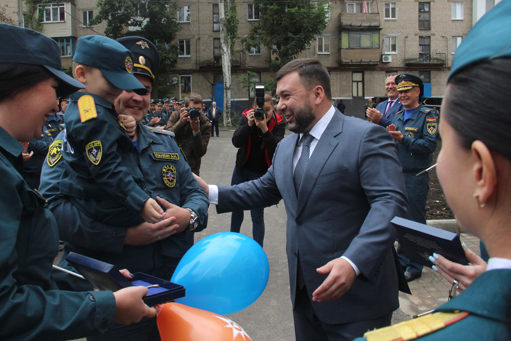 Глава ДНР Денис Пушилин вручил сотрудникам МЧС ДНР ключи от служебных квартир