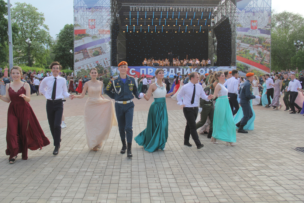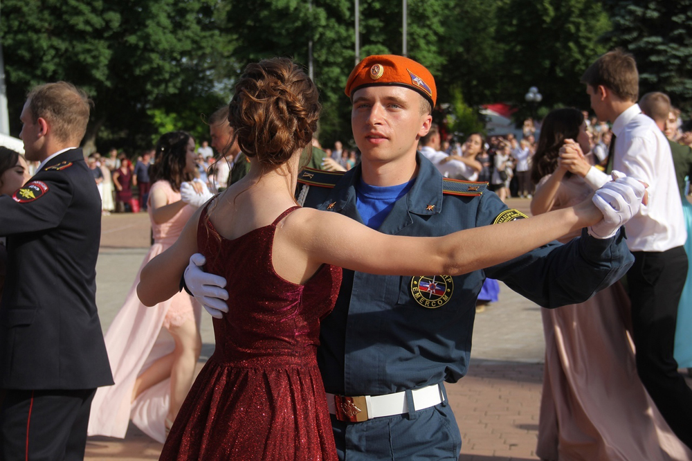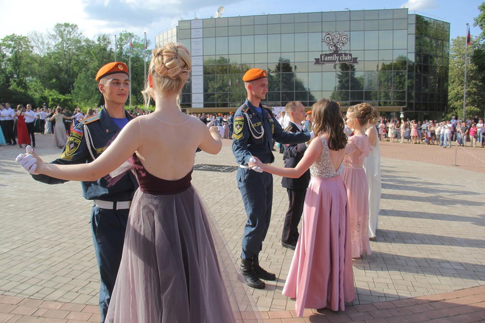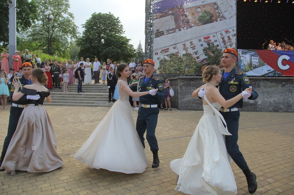 Под аккомпанемент Студенческого духового оркестра Донецкой Государственной музыкальной Академии имени С.С. Прокофьева курсанты Академии гражданской защиты станцевали 7 танцев: «Полонез», «Офицерский вальс», «Полька», «Вальс – Дружба», «Шотландский вальс», «Русская кадриль – Катюша» и «Вальс».