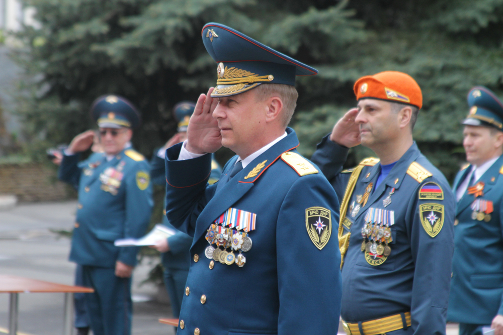 Министр МЧС ДНР Алексей Кострубицкий вручил награды сотрудникам МЧС, представлявшим спасательное ведомство на параде Победы