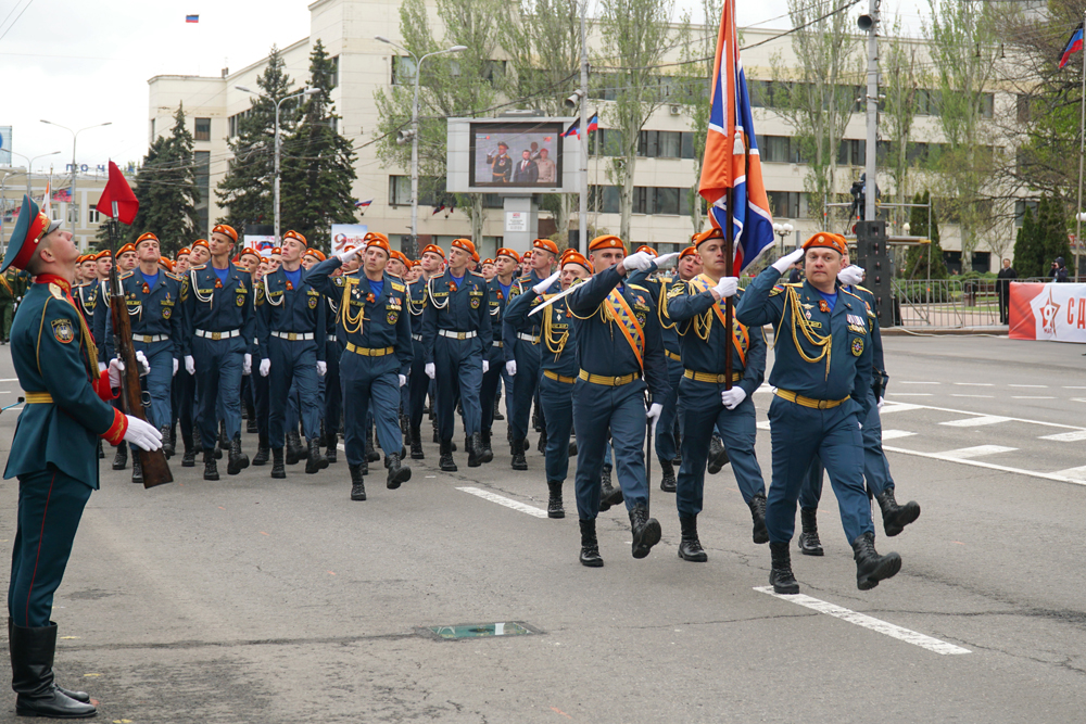 Сегодня, 9 мая, сотрудники спасательного ведомства приняли участие в седьмом военном параде, проходящем в Донецкой Народной Республике, и приуроченном празднованию 76-й годовщины Победы в Великой Отечественной войне.