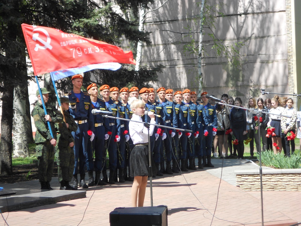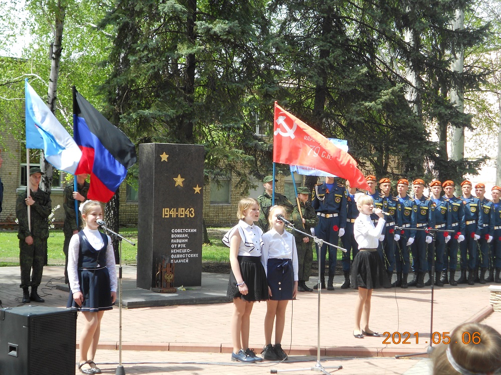 Сегодня, 6 мая 2021 года, при поддержке совета ветеранов Великой Отечественной войны Куйбышевского района г. Донецка, курсанты Академии гражданской защиты, учащиеся ВПК «Патриот» МОУ «Школа 71 им. П.Ф. Батулы г. Донецка», ОО ВПД «Молодая гвардия – Юнармия» приняли участие в торжественном митинге, посвящённом 76-й годовщине Победы в Великой Отечественной войне, на территории парка Дворца культуры «Меридиан» возле памятника Советским воинам, павшим от рук немецко-фашистских палачей.