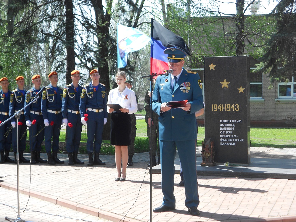 Поздравили с Днем Великой Победы всех присутствующих на митинге заместитель начальника академии полковник службы гражданской защиты Кирьян Андрей Петрович и заместитель Главы администрации Куйбышевского района г. Донецка Нечаева Марина Владимировна.