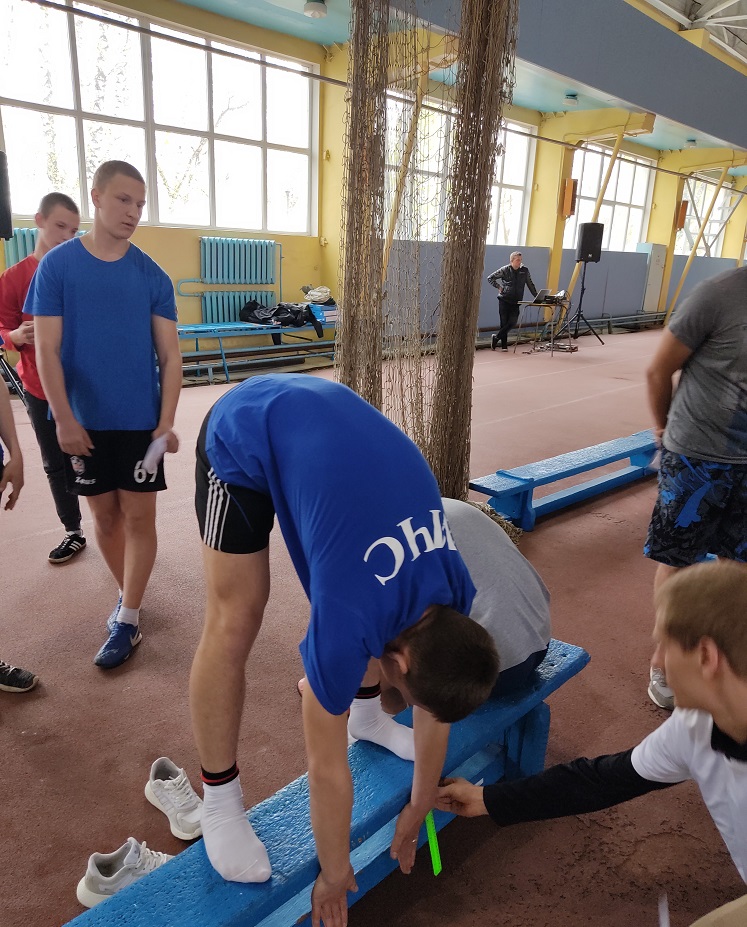 В данный комплекс вошли следующие упражнения: челночный бег 4*9 метров, бег на 60 метров, прыжок в длину с места, подтягивание, отжимания, рывок гири 16 килограмм, поднимание туловища, упражнение на гибкость.