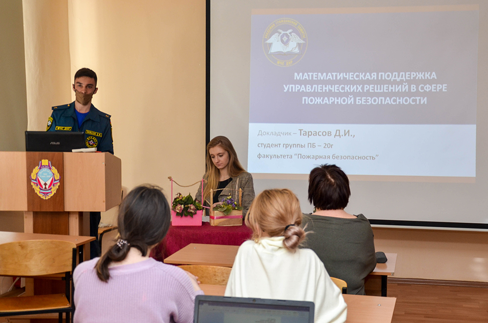 На пленарном заседании с докладами выступили студенты первого курса Академии: Власович Антон Олегович (группа ТБ-20б) с докладом «Анализ влияния пожаров на некоторые экономические показатели в г. Макеевка» (научный руководитель к.т.н., доцент Гребенкина А.С.) и Тарасов Даниил Игоревич (группа ПБ-20г) с докладом «Математическая поддержка управленческих решений в сфере пожарной безопасности» (научный руководитель к.т.н., доцент Гребенкина А.С.). Также свой доклад в рамках мероприятия представил Руденский Артём Романович (ПБ-20а, научный руководитель Толпекина М.Е.). Представленные доклады вызвали большой интерес участников и оживленную дискуссию.