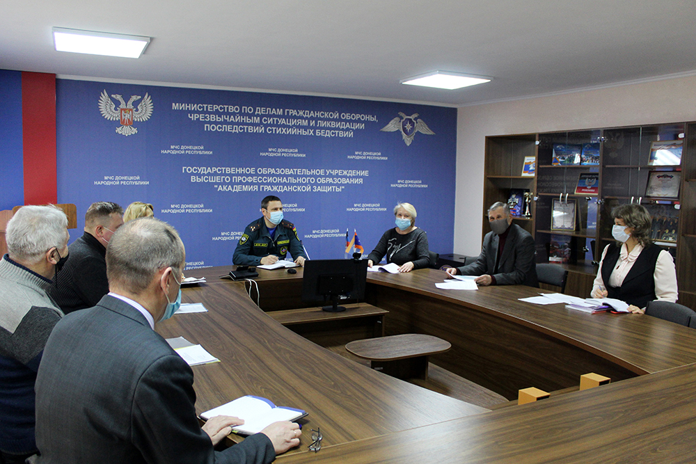 11 февраля 2021 г. на базе ГОУВПО «Академия гражданской защиты» МЧС ДНР состоялось заседание учебно-методического объединения по укрупненной группе 20.00.00 «Техносферная безопасность и природообустройство» под председательством заместителя начальника академии (по учебной работе) полковника службы гражданской защиты Старостенко М.Б. В работе заседания приняли участие представители учреждений высшего профессионального образования: ДонНТУ, ДонНУ и ДонНАСА.