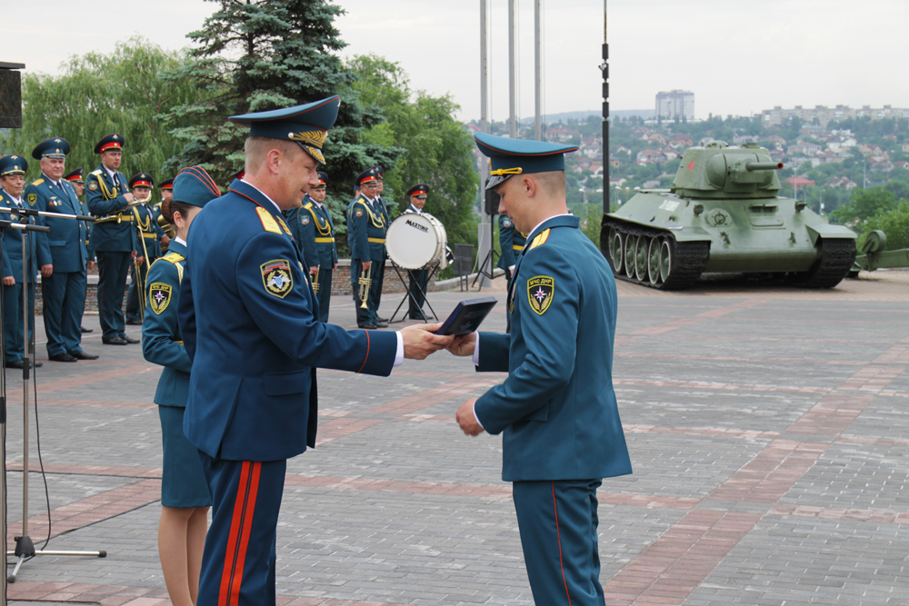 В торжественной обстановке Министр МЧС наградил 6 лейтенантов службы гражданской защиты памятными знаками «За высокие достижения в учебе» первой и второй степени. После чего Алексей Александрович обратился к выпускникам с напутственным словом: «Уже завтра вам предстоит обеспечивать пожарную безопасность в нашем государстве, предотвращать и ликвидировать чрезвычайные ситуации, обеспечивать мирную жизнь жителей Республики. В борьбе с катастрофами и стихийными бедствиями вы сможете пройти проверку на прочность, демонстрируя преданность своему делу, смелость и отвагу. В каких бы сложных обстоятельствах вам не приходилось действовать, не забывайте, что вы – офицеры службы гражданской защиты».