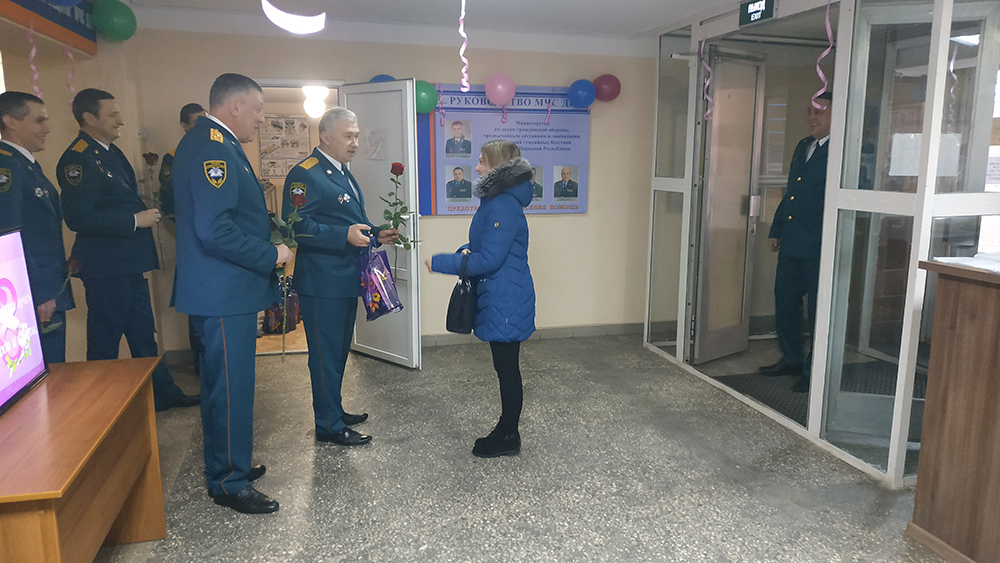 На торжественном собрании с поздравительной речью выступил полковник службы гражданской защиты Колодяжный А.А.: «Спасибо Вам за то, что наполняете смыслом нашу жизнь, за Ваши понимание и мудрость, за умение любить, сделать наш мир светлым, уютным, радостным. От всей души желаю всем женщинам, чтобы волшебная атмосфера этого праздника, наполненная свежестью первых весенних цветов, окружала Вас и в будни. Крепкого здоровья, душевного комфорта и счастья, успехов в учебе и труде, благополучия!»