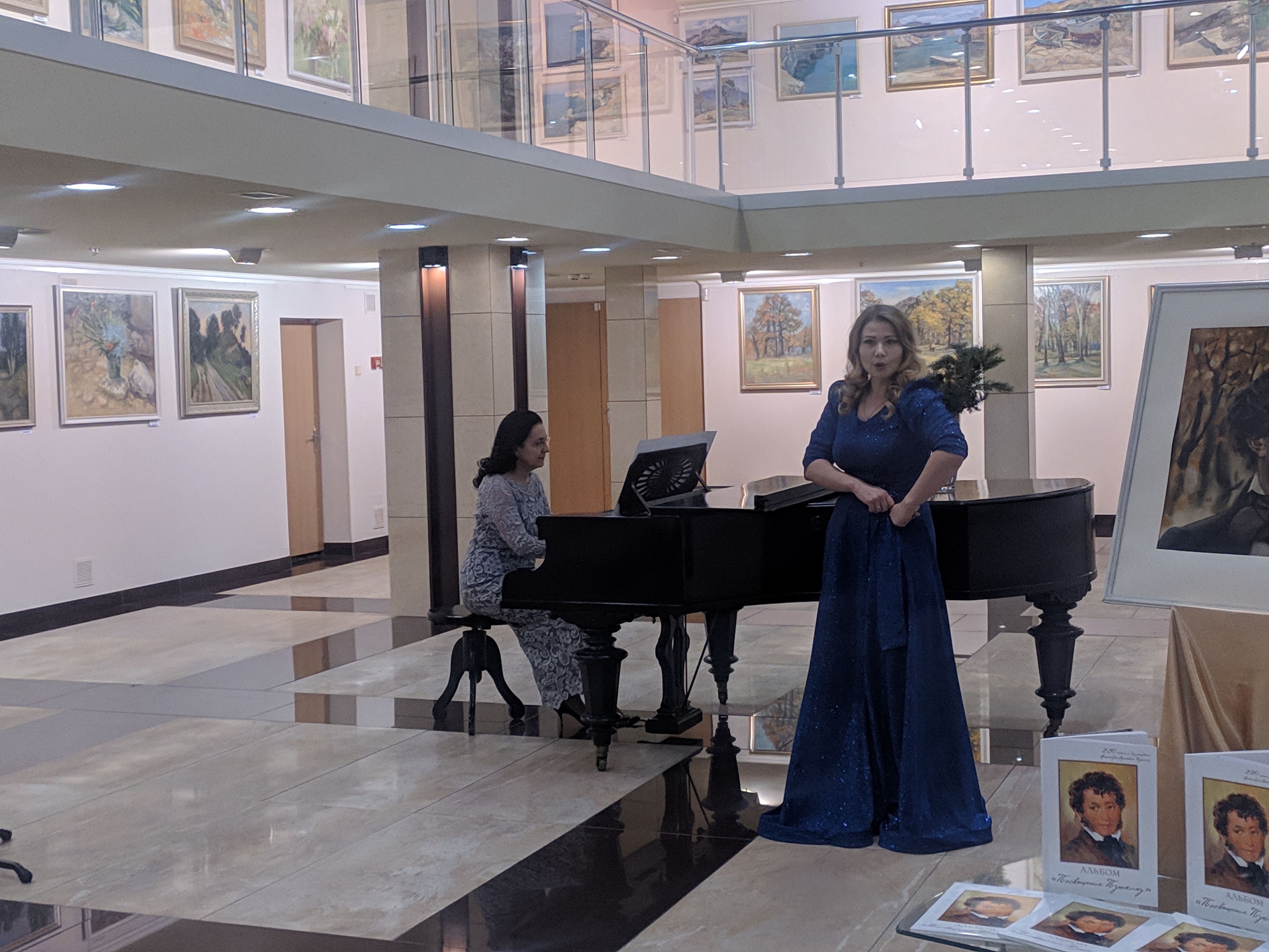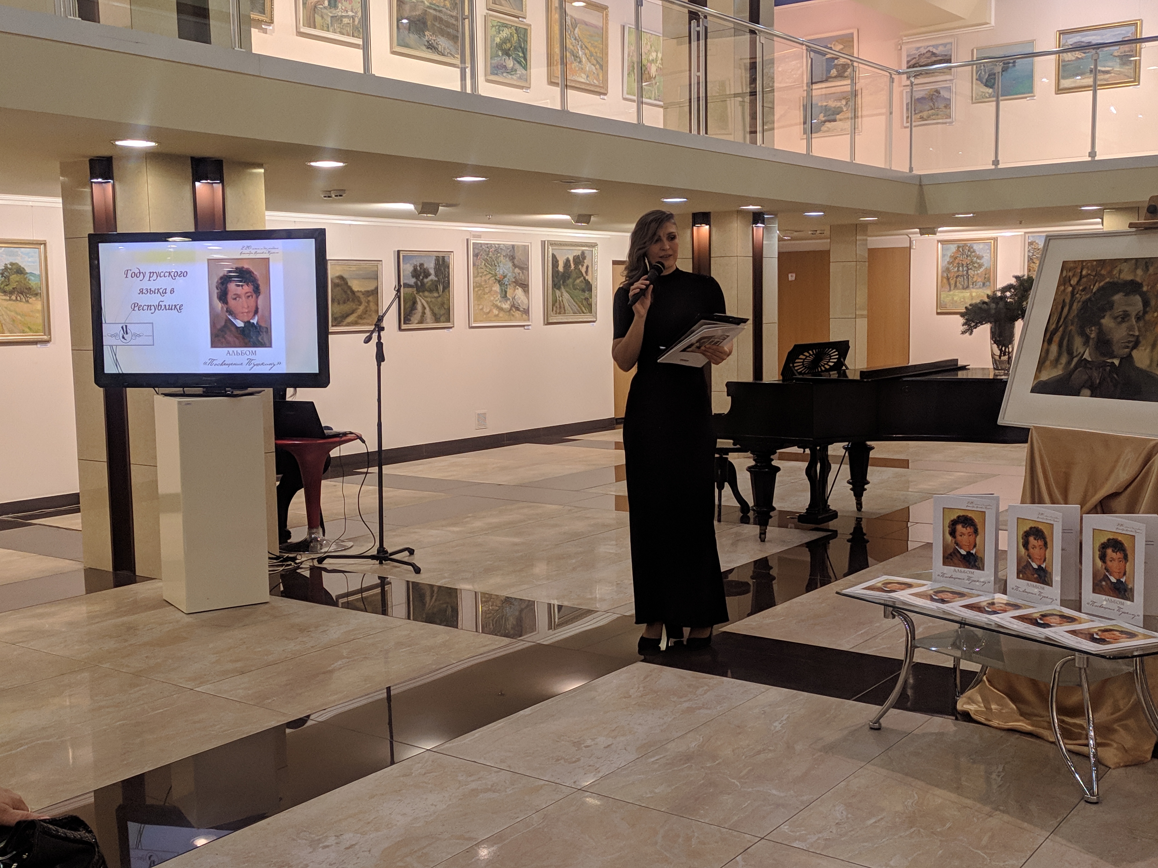 Директор «Арт-Донбасс» Екатерина Калиниченко рассказывала об авторах и их работах, объединивших изобразительное искусство, музыку и слово. Украшением презентации стало выступление солистов Донецкой государственной академической филармонии, в исполнении которых прозвучали романсы «В крови горит огонь желанья», «Я здесь, Инезилья» и ария Людмилы из оперы «Руслан и Людмила». Поэтическим подарком для наших обучающихся прозвучали стихотворения великого поэта.