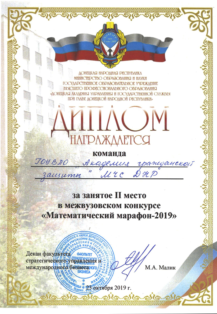 23 октября 2019 г. на базе ГОУ ВПО «Донецкая академия управления и государственной службы при Главе Донецкой Народной Республики» состоялся Межвузовский конкурс «Математический марафон-2019».