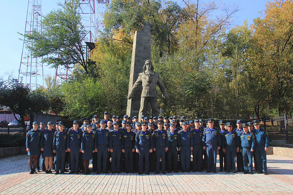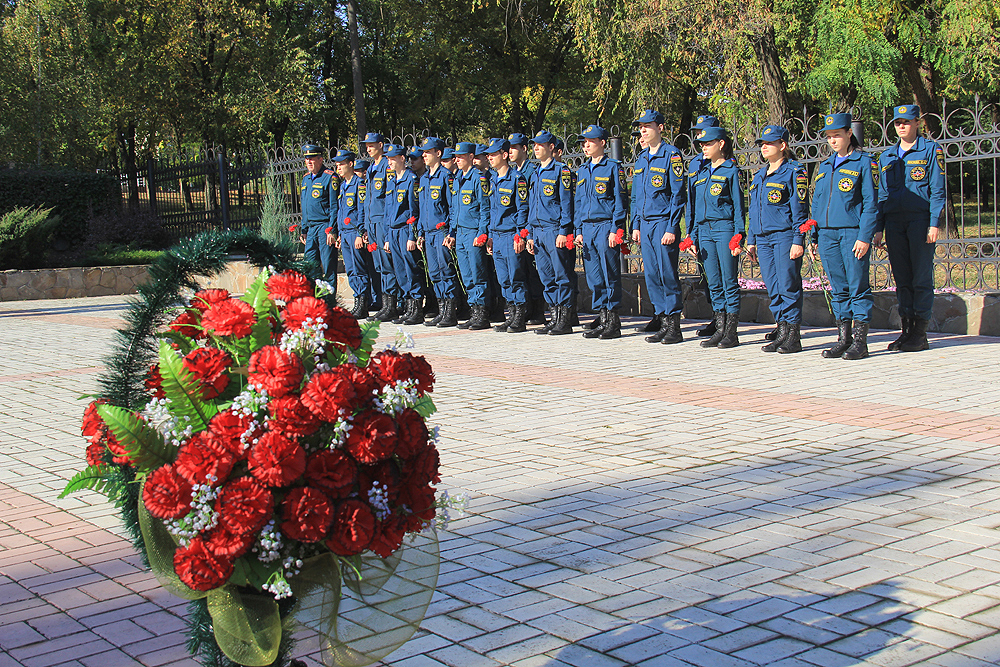 Студенты и сотрудники ГОУВПО «Академия гражданской защиты» МЧС ДНР под руководством заместителя начальника академии полковника службы гражданской защиты Кирьяна Андрея Петровича возложили цветы к памятнику «Пожарный-спасатель» в рамках проведения месячника гражданской обороны. На мероприятии присутствовал заместитель Министра МЧС полковник службы гражданской защиты Агарков Андрей Викторович. Участники торжественного митинга минутой молчания почтили память погибших сотрудников МЧС.