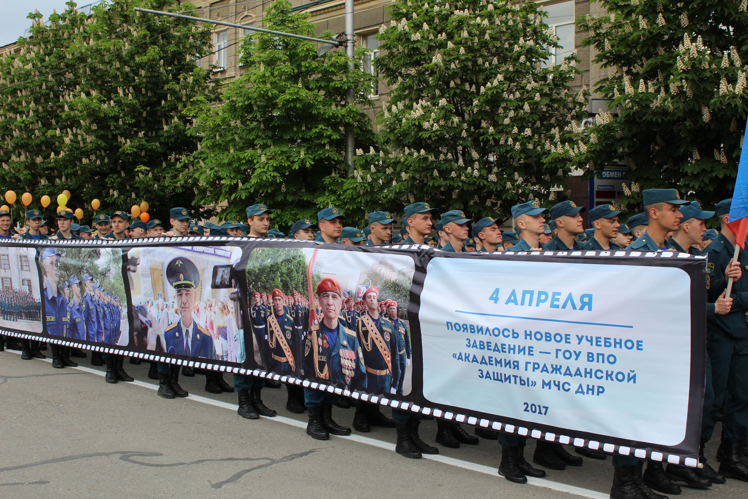 Сегодня, 11 мая 2019 года, студенты ГОУВПО «Академия гражданской защиты» МЧС ДНР приняли участие в шествии «Лента времени» по случаю празднования пятой годовщины основания Донецкой Народной Республики
