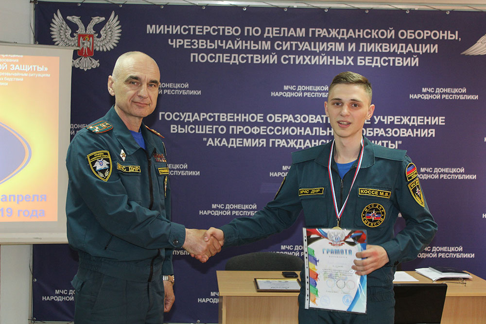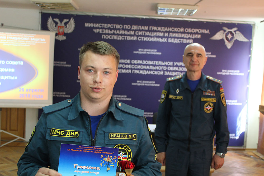 Специалист отдела воспитательной работы, лейтенант службы гражданской защиты Алексей Чигрин был награжден Грамотой ГОУВПО «Академия гражданской защиты» МЧС ДНР за достойное представление Донецкой Народной Республики в зональном этапе форума «Я - гражданин Подмосковья» (г. Химки, Московская область, РФ).