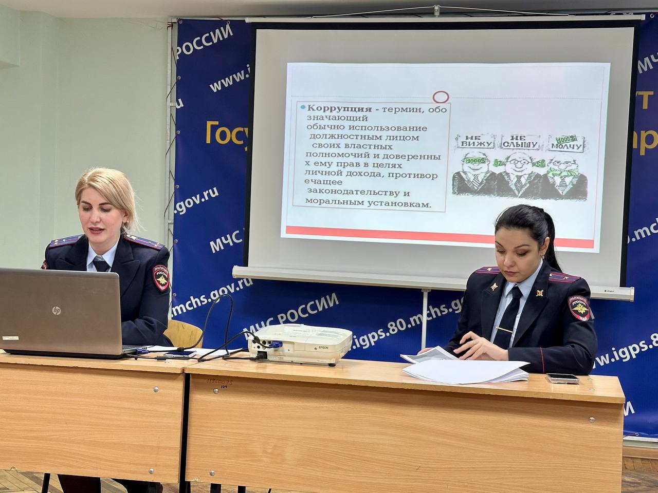 8 ноября в рамках единого дня правовых знаний в Донецком институте ГПС МЧС России Донецким филиалом ФГКОУ ВО «Волгоградская академия Министерства внутренних дел Российской Федерации» была организована и проведена лекция на тему: «ПРОФИЛАКТИКА КОРРУПЦИОННЫХ РИСКОВ СРЕДИ СОТРУДНИКОВ ОРГАНОВ ИСПОЛНИТЕЛЬНОЙ ВЛАСТИ».