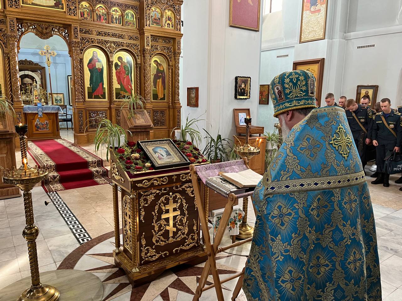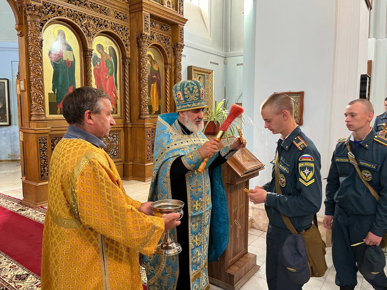 Сегодня, личный состав Донецкого института ГПС МЧС России принял участие в благодарственном молебне перед иконой Божией Матери «неопалимая Купина» в Церкви Святого Михаила Архистратига села Урзуф.