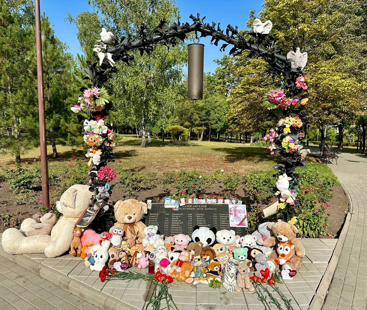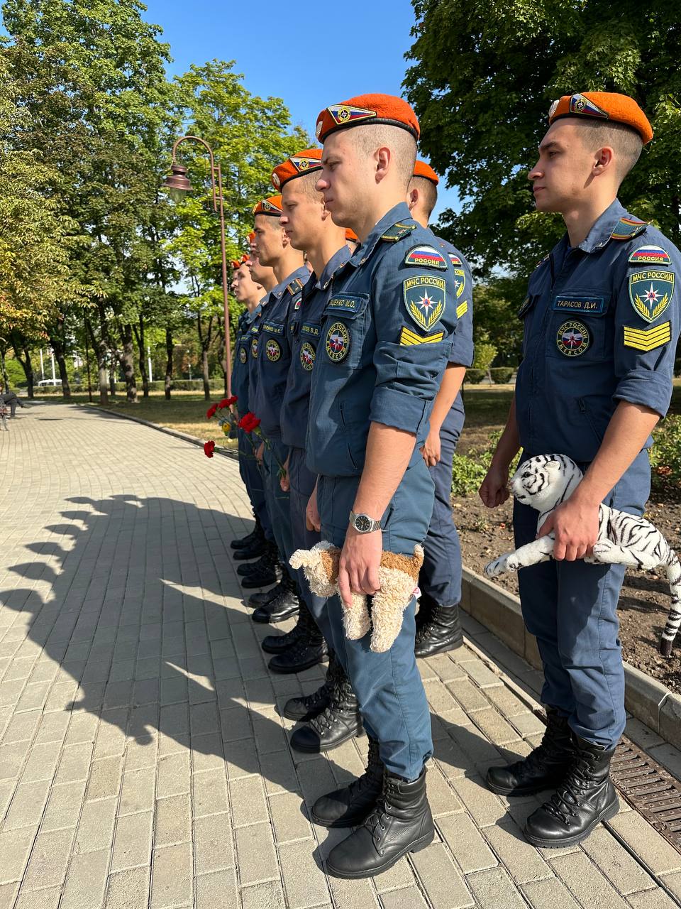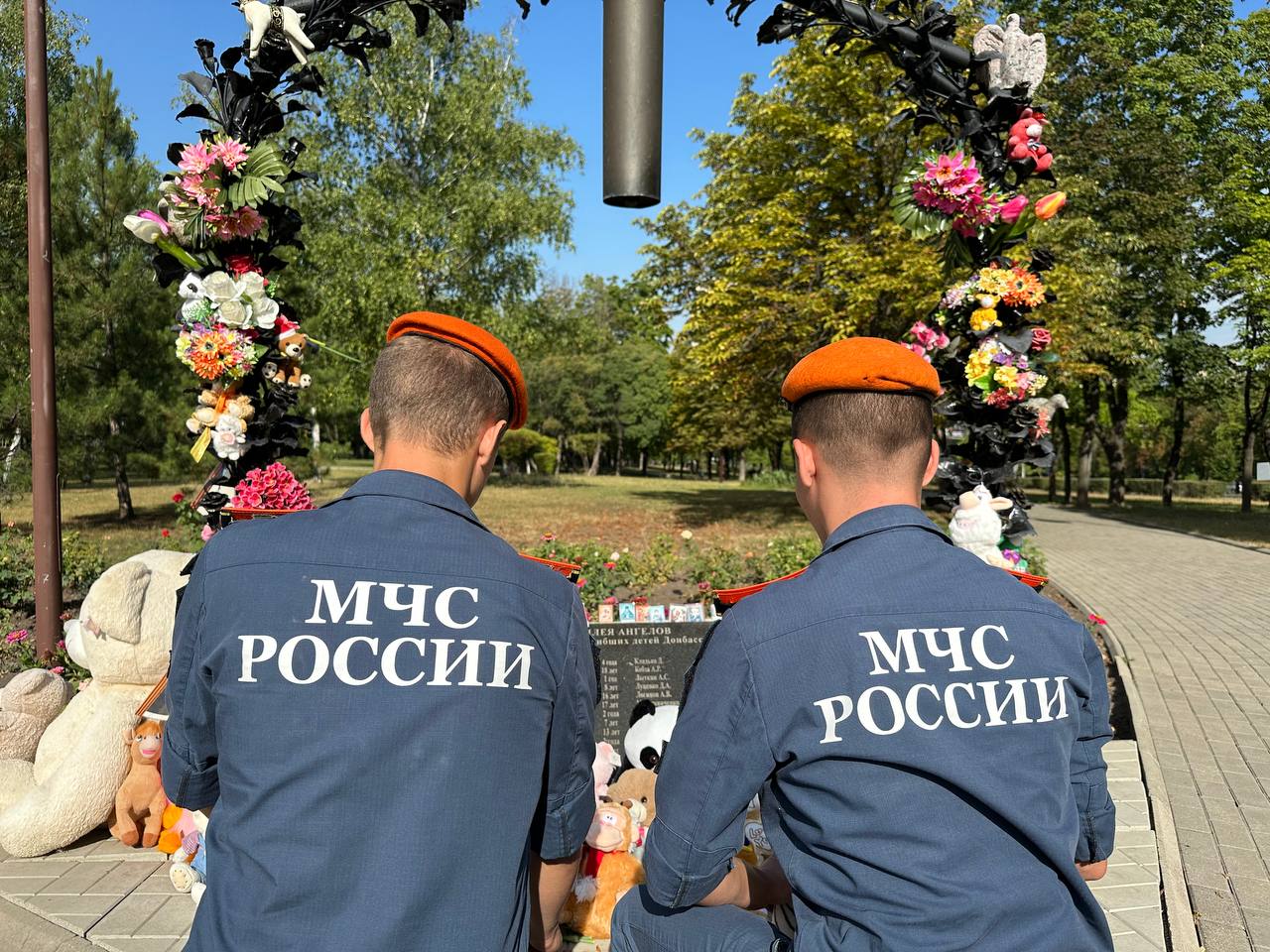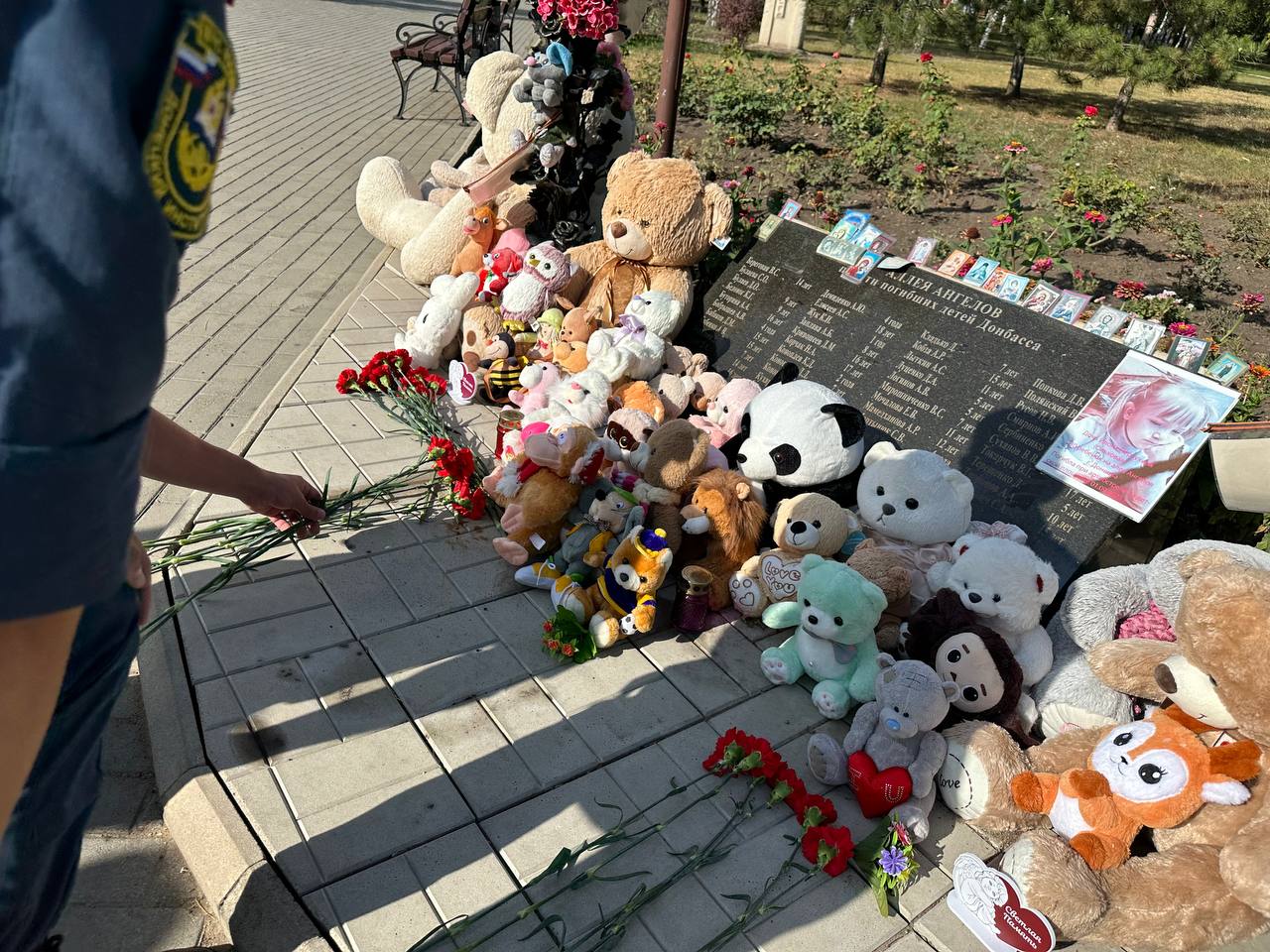 В знак памяти и скорби, курсанты Донецкого института ГПС МЧС России возложили цветы и игрушки к памятнику погибшим детям Донбасса, участники на минуту склонили головы перед светлой памятью тех кто мог жить долго и счастливо, радоваться солнцу, мог сделать этот мир добрее и светлее.