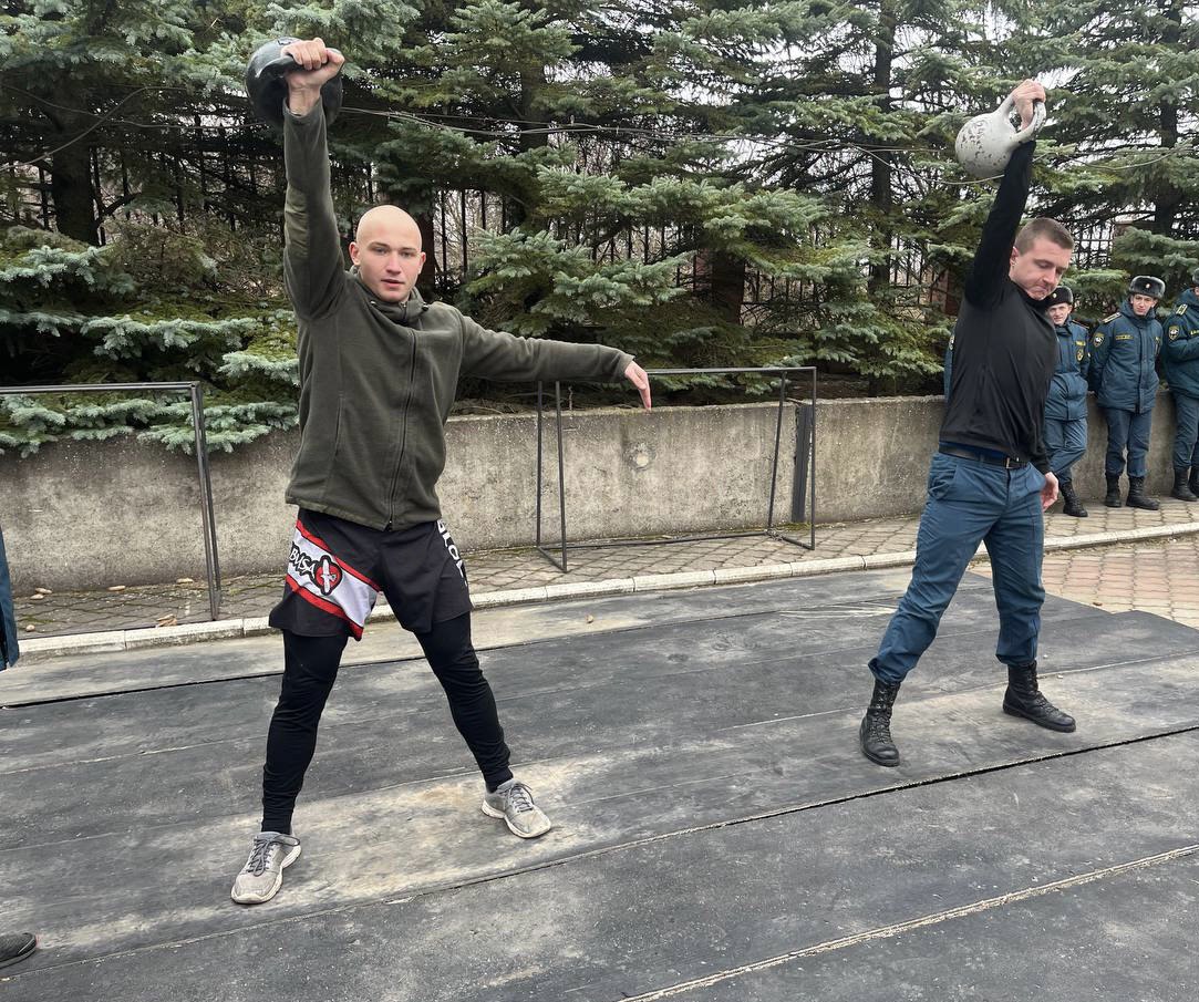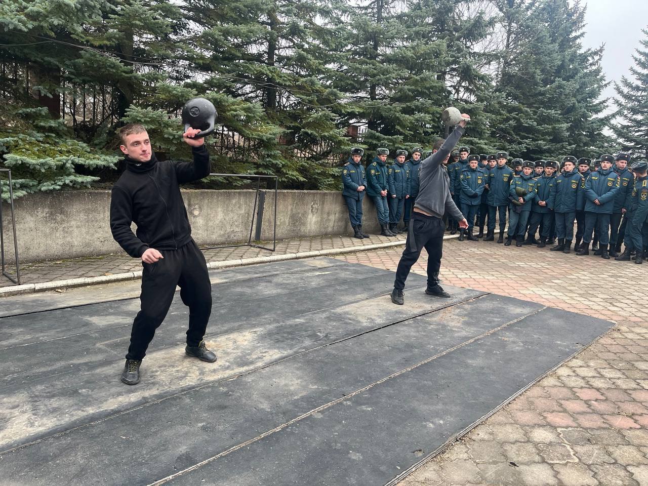 в весовой категории свыше 80 кг первое место занял командир отделения факультета «Техносферной безопасности» младший сержант службы гражданской защиты Титаренко И.С. с результатом 180 подъемов гири.