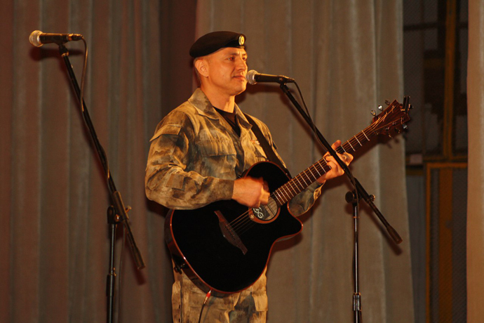 Виталий Леонов не только исполнил собственные песни, но и пообщался со зрителями. А ему есть, что рассказать, так как автор и исполнитель песен – офицер запаса МВД России, служил в горячих точках на Северном Кавказе, кавалер правительственных наград «За заслуги перед Отечеством» и «За отвагу».