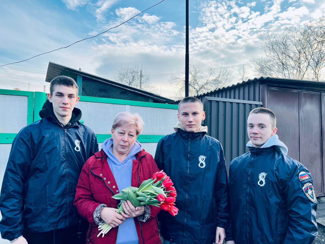 Студенты-спасатели вручили прекрасным дамам цветы и показали видеопоздравления от сына и любимого.