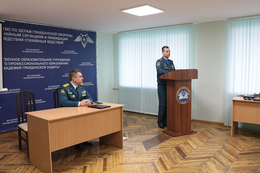 В ходе торжественной части мероприятия, Андрей Викторович поздравил сотрудников Академии с профессиональным праздником – Днем спасателя Донецкой Народной Республики, наступающим Новым Годом и Рождеством Христовым.