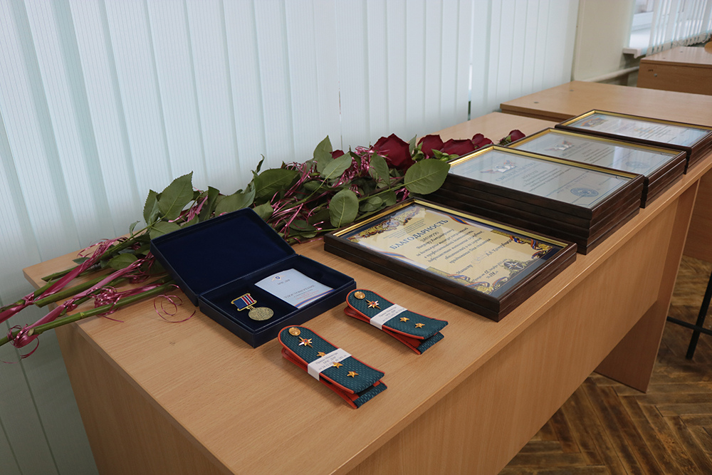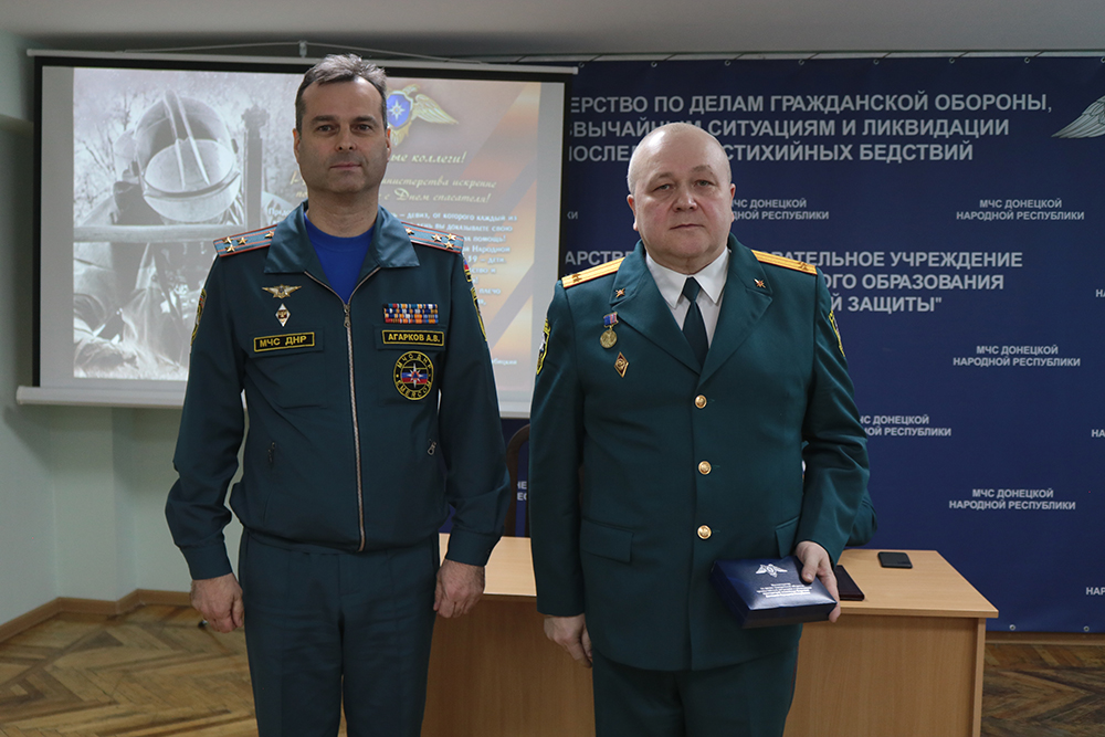 За заслуги, личный вклад в развитие и совершенствование мероприятий в обеспечении пожарной безопасности, многолетнюю и безупречную службу в пожарной охране заместитель Министра МЧС ДНР полковник службы гражданской защиты Агарков А.В. наградил памятным знаком МЧС ДНР «160 лет пожарной охране Донбасса» подполковника службы гражданской защиты Соколянского Владимира Владиславовича, начальника кафедры организации пожарно-профилактической работы факультета «Пожарной безопасности» Академии. Также за достижение высоких результатов в служебной и трудовой деятельности, образцовое выполнение должностных обязанностей, личный вклад в укрепление авторитета и престижа МЧС ДНР вручил сотрудникам Академии гражданской защиты специальные звания и Благодарности МЧС ДНР.