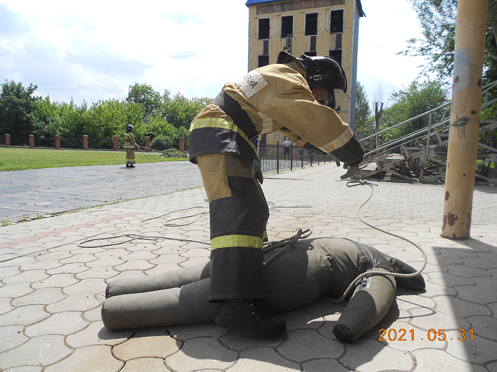 31 мая 2021 года прошёл практический этап приёма государственного экзамена у курсантов 5-го курса факультета «Пожарной безопасности». На данном этапе будущим выпускникам предстояло выполнить на оценку по два норматива, среди которых было одевание ОЗК, работа с бензорезом или бензопилой, с гидравлическим инструментом, вязание двойной спасательной петли на пострадавшем, комбинированный подъём в окно 4-го этажа тренировочной башни и самоспасание с 4-го этажа.