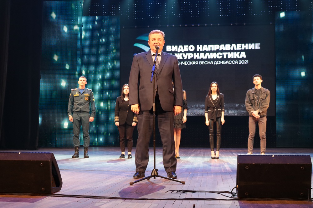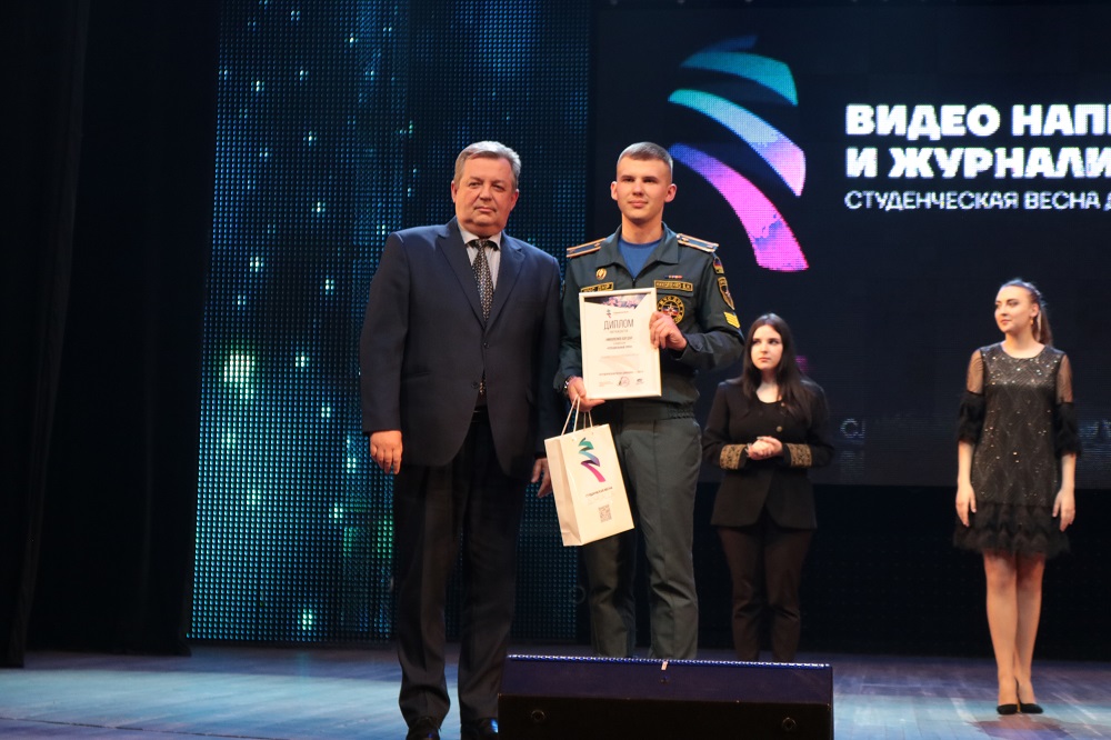 Министр информации Донецкой Народной Республики Антипов Игорь Юрьевич вручил диплом, в номинации «Специальный приз», курсанту факультета «Пожарной безопасности» рядовому службы гражданской защиты Николенко Богдану за авторский видеоролик «Соскучился».