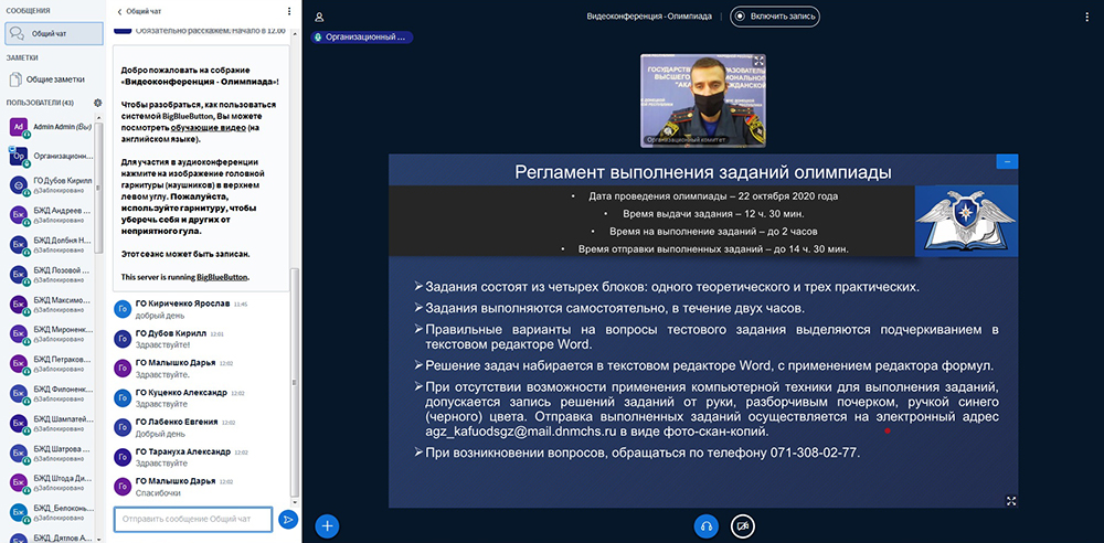 Олимпиада проводилась в режиме видео-конференции посредством использования программ для организации вебинаров.