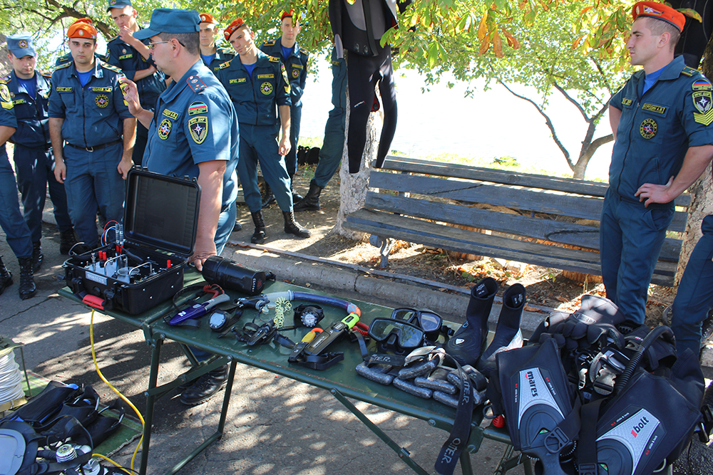 Начальник группы – водолазный специалист группы водолазно-спасательных работ аварийно-спасательной части аварийно-спасательного отряда специального назначения Республиканского спасательного центра МЧС ДНР старший лейтенант службы гражданской защиты Рощин Антон Васильевич провел обзорную экскурсию о направлении деятельности и задачах, которые выполняют водолазы-спасатели МЧС. Рассказал принцип действия водолазного оборудования. Продемонстрировал работу водолазной телефонной станции с панорамной маской и кабель-сигналом, которая осуществляет двухстороннюю связь с водолазом-спасателем во время проведения работ под водой, что обеспечивает более быстрое и безопасное выполнение задач.