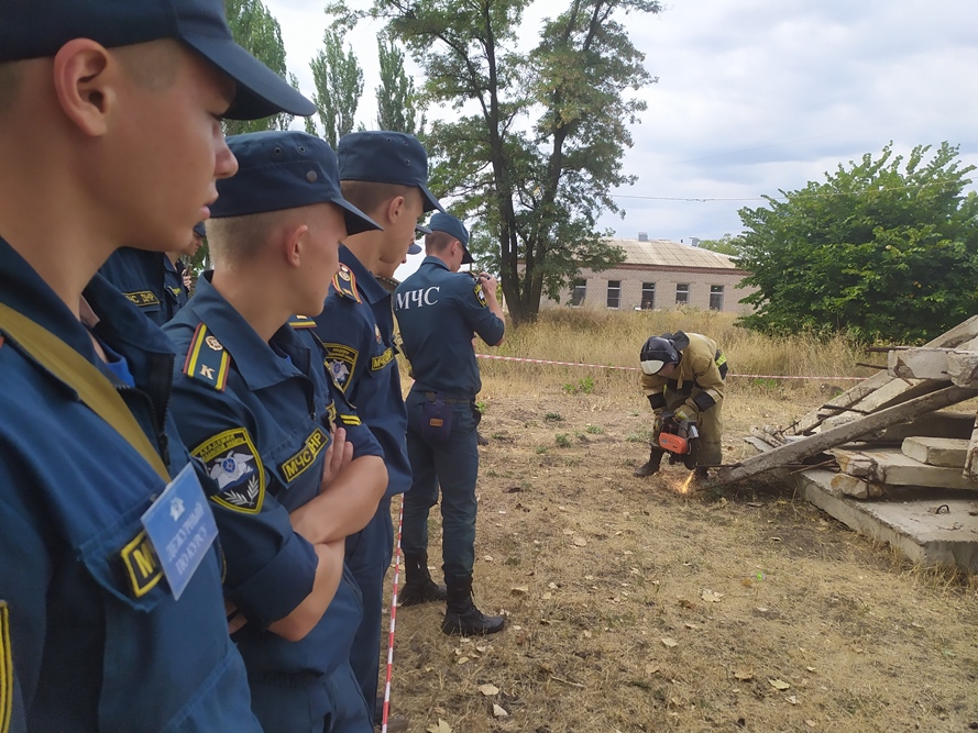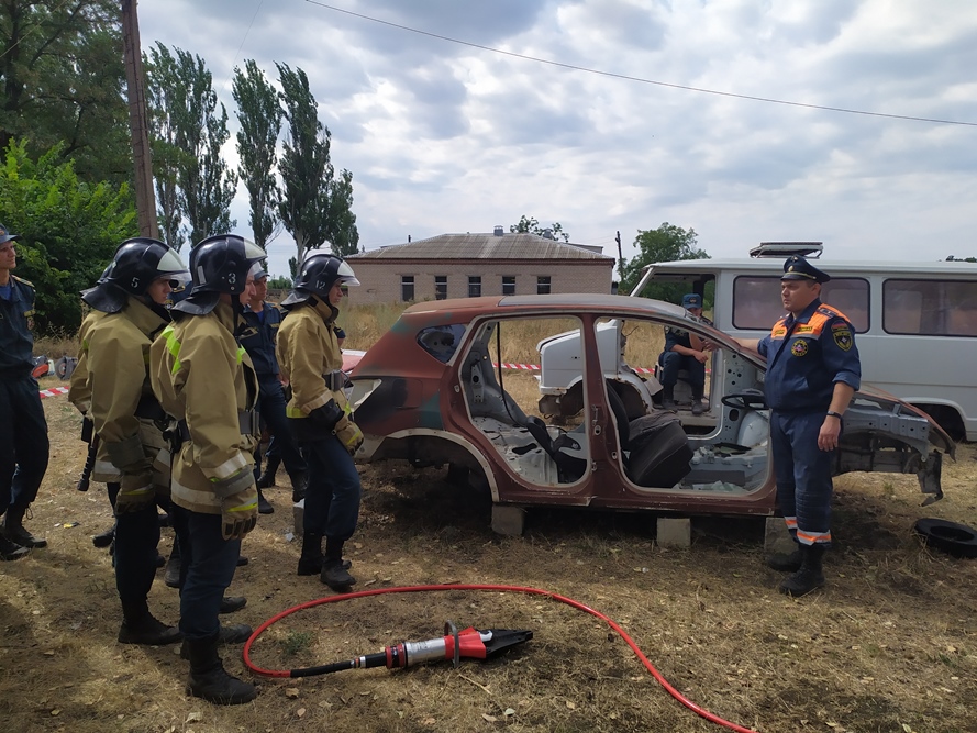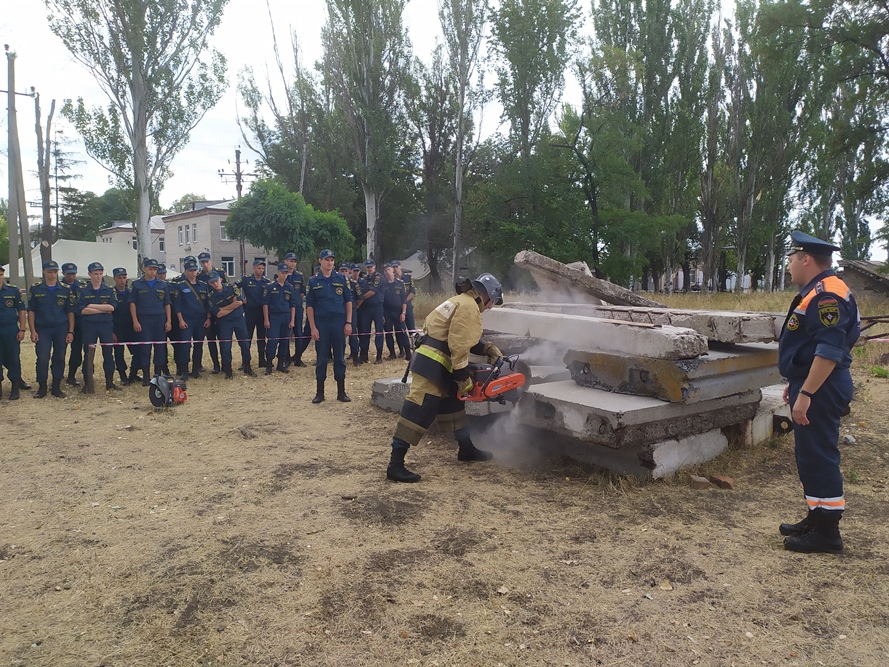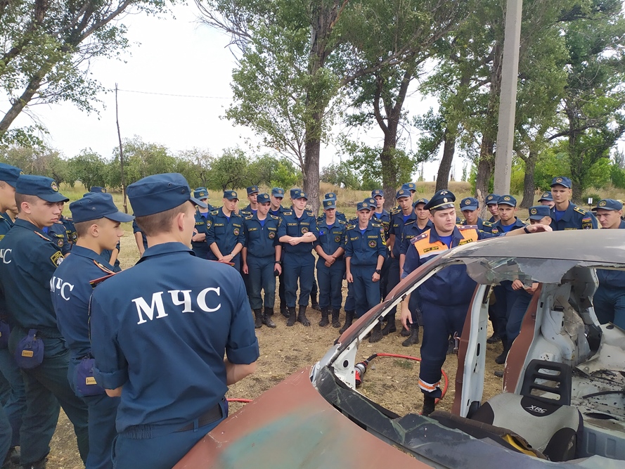 Курсанты Академии гражданской защиты МЧС ДНР на практике отрабатывают навыки по применению аварийно-спасательных инструментов