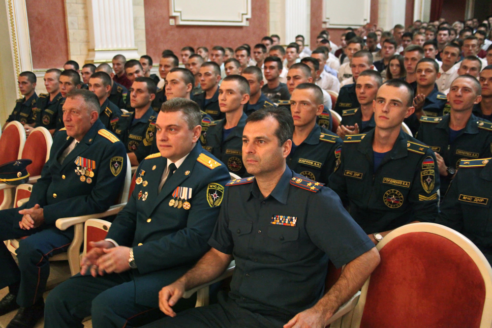С напутственным словом перед первокурсниками выступил и начальник Академии гражданской защиты М.Л. Кожевников: «Сегодня вы в самом начале своего профессионального пути. Вам, дорогие первокурсники, предстоит трудный, но интересный путь вместе с прекрасными преподавателями и офицерами – профессионалами своего дела. Лучшие из вас смогут носить гордое звание курсанта Академии гражданской защиты МЧС ДНР».