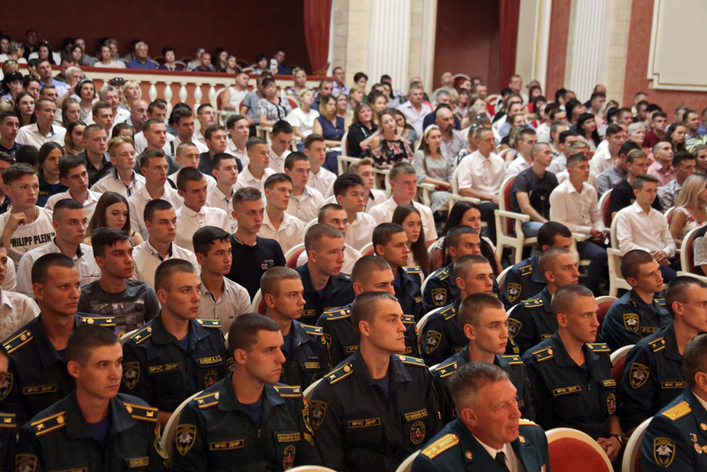 Сегодня, 31 августа 2020 года состоялось торжественное мероприятие «Посвящение в студенты – 2020». Поздравили первокурсников с началом учебного года заместитель Министра по делам гражданской обороны, чрезвычайным ситуациям и ликвидации последствий стихийных бедствий Донецкой Народной Республики полковник службы гражданской защиты Агарков Андрей Викторович, начальник ГОУВПО «Академия гражданской защиты» МЧС ДНР полковник службы гражданской защиты Кожевников Михаил Леонидович, а также педагогический состав Академии.